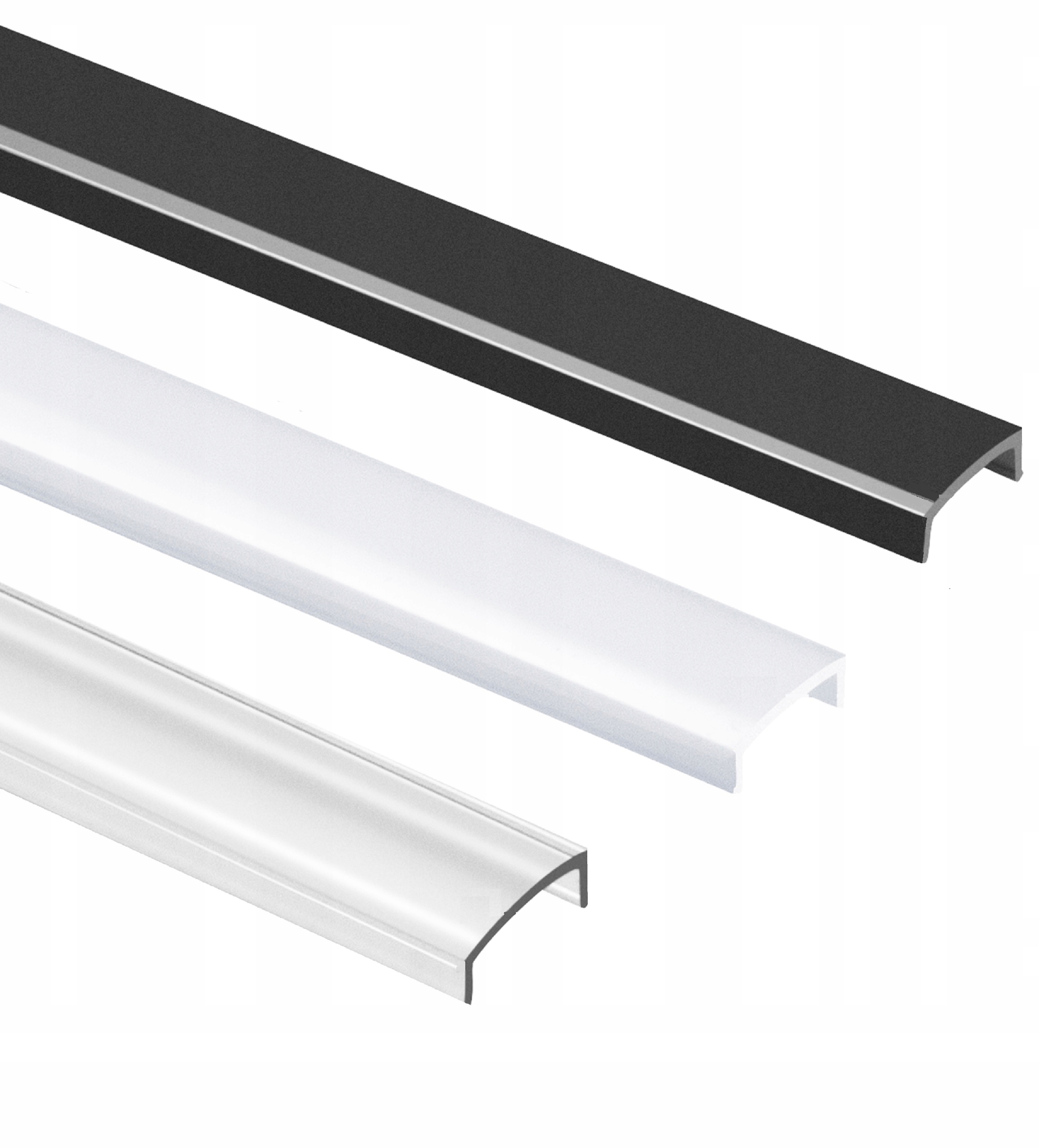 Прозрачный вариант - прозрачный, более светлый, молочный больше маскирует ленту, черный не выделяется при установке в профиль.
