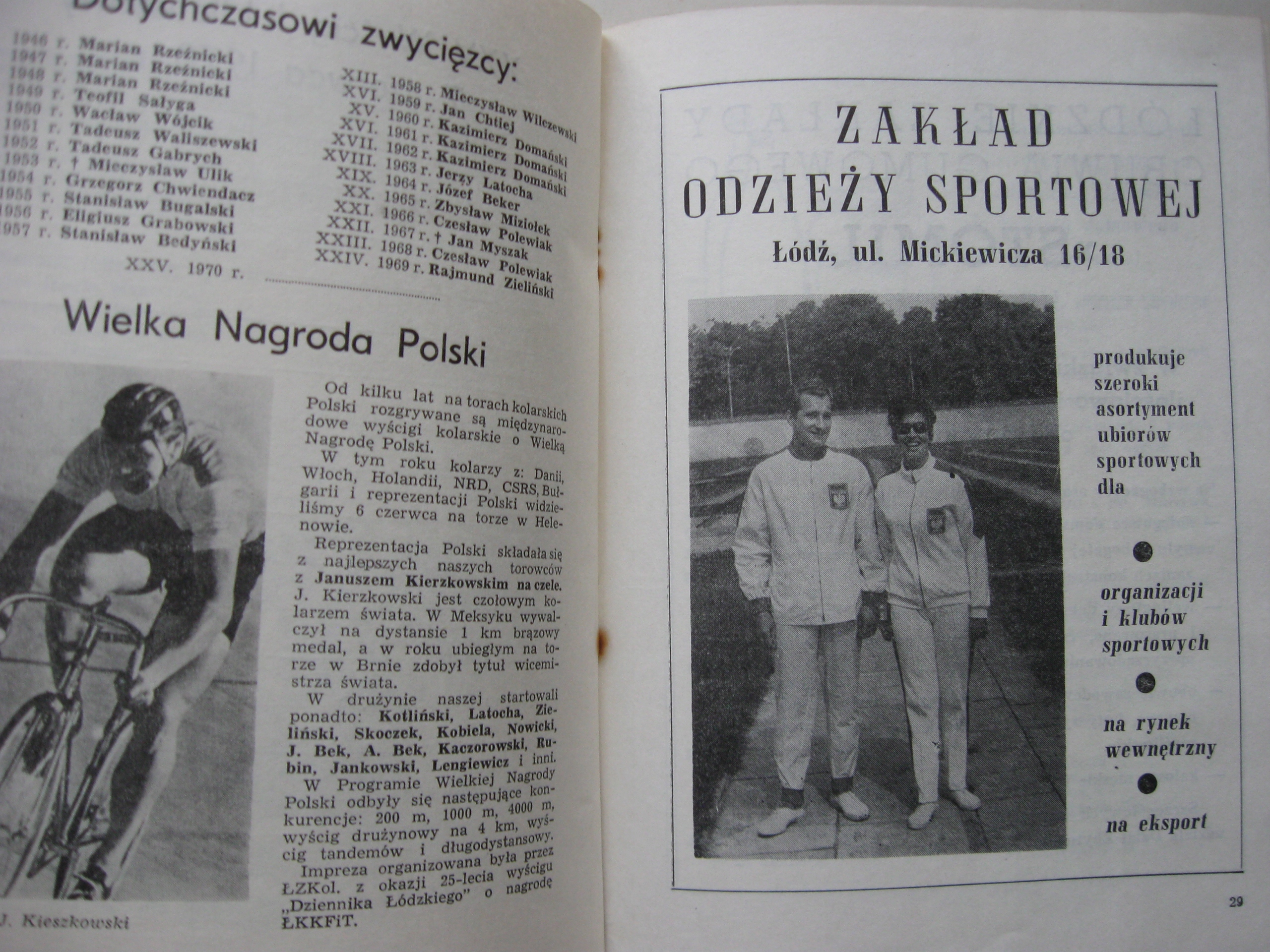 Програма велогонок KS Gwardia Łódź 1970
