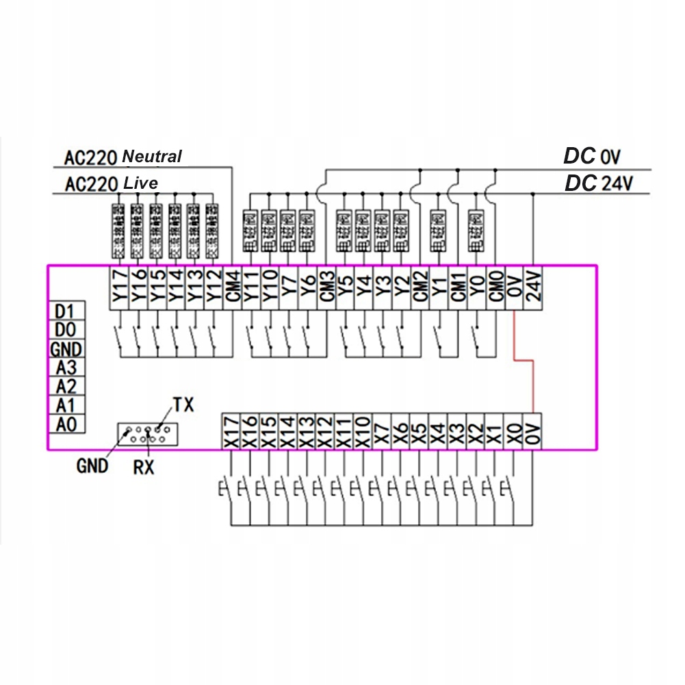 Компоненты компонентов отправной точки Y: Y0-Y17 являются ретрансляционными выходами, используются все импортные реле; Контакты реле: AC не более 5А 250 В; Ток тока не более 30 В 5А