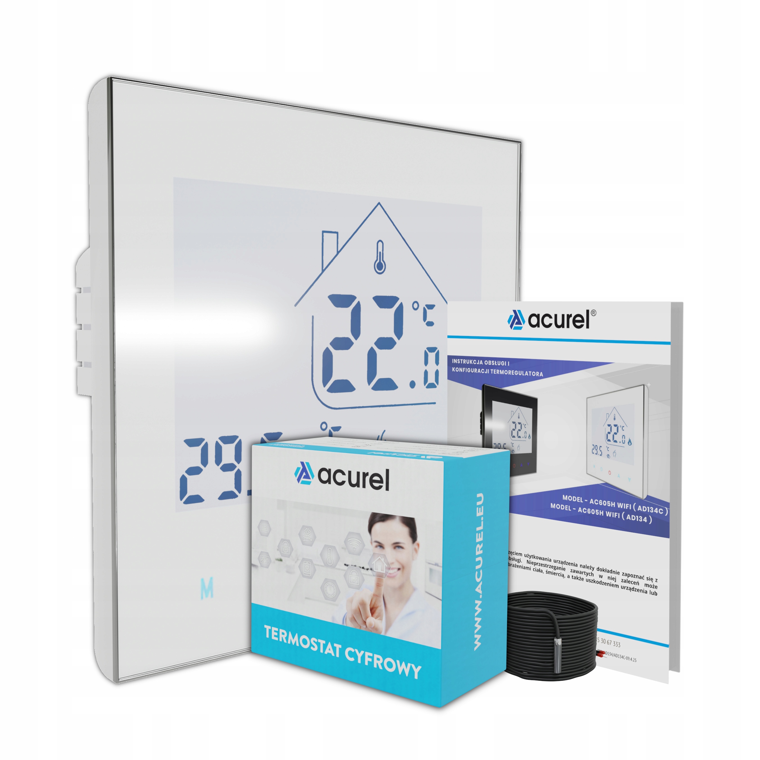 Современный комнатный термостат AD134-WIFI — идеальное решение для точного управления электрическими теплыми полами и другими системами отопления. Благодаря встроенному реле 16А он позволяет напрямую подключать нагревательные пленки и маты, электронагреватели или нагревательные панели, обеспечивая оптимальный тепловой комфорт и экономию энергии. Большой ЖК-экран с подсветкой и интуитивно понятные сенсорные кнопки гарантируют удобное управление в любой ситуации.