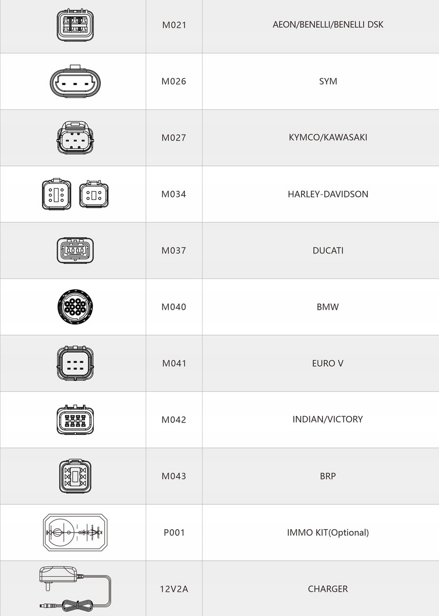 Серия автомобилей с поддержкой программирования ключей для мотоциклов: