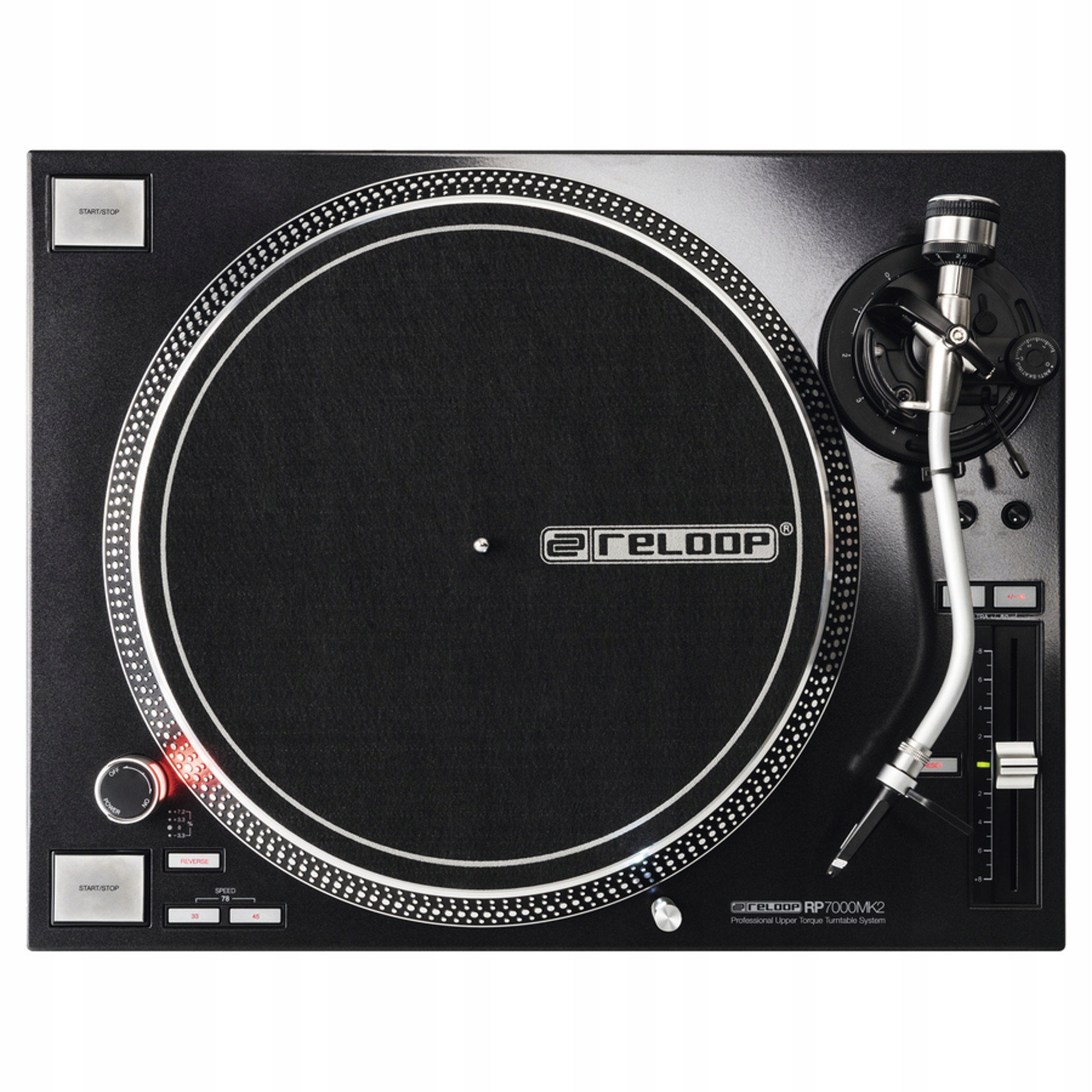 Благодаря потенциометру Pitch с высоким разрешением можно регулировать скорость вращения диска в классическом диапазоне +/- 8%. RP-7000 MK2 также имеет диапазон, немного более подходящий для диджеев, т.е. +/- 16%, а также сверхширокий диапазон до +/- 50%. Это позволяет проявить больше творчества при модуляции тона песни. Также доступен кварцевый замок.