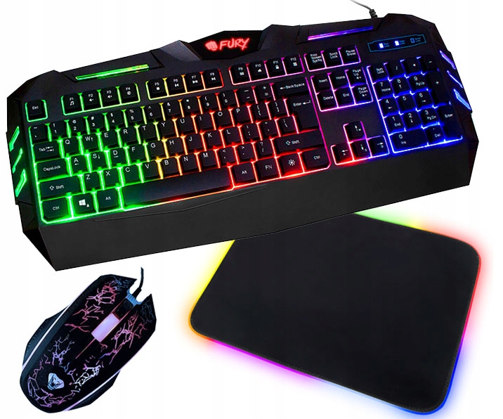 Фирменный набор для геймеров Игровая клавиатура FURY SPITFIRE с усиленной подсветкой + коврик с подсветкой + мышь