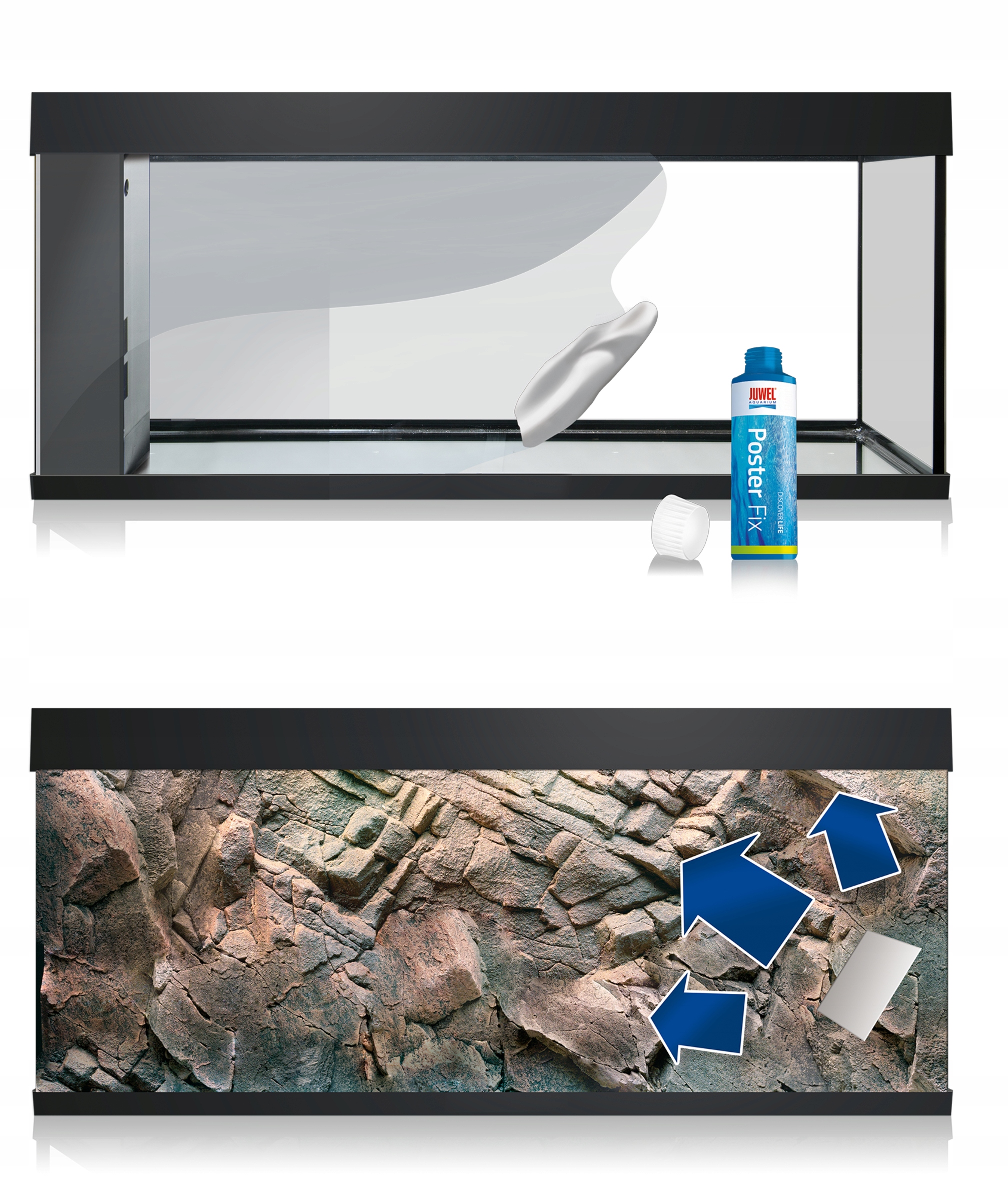 Фотообои, покрытые специальным покрытием, легко крепятся на заднюю стенку резервуара.