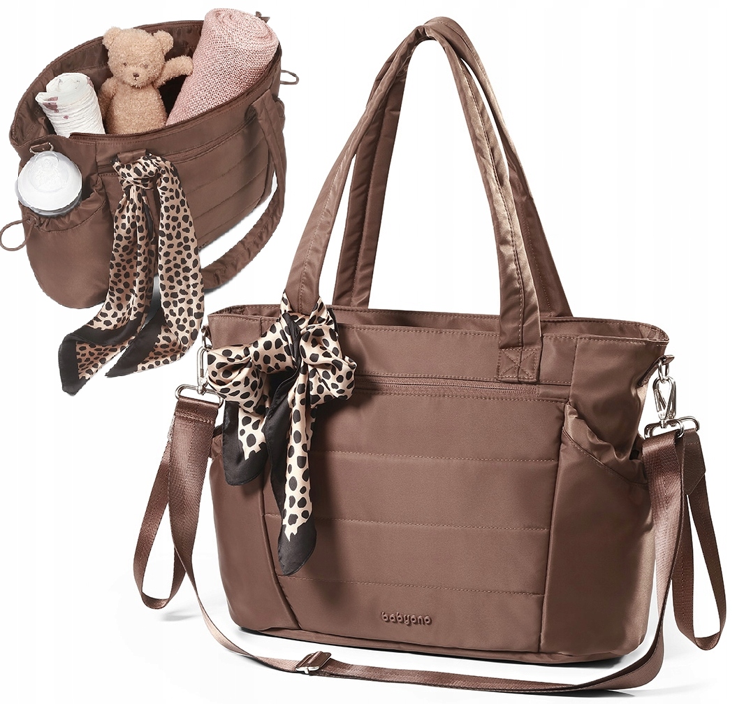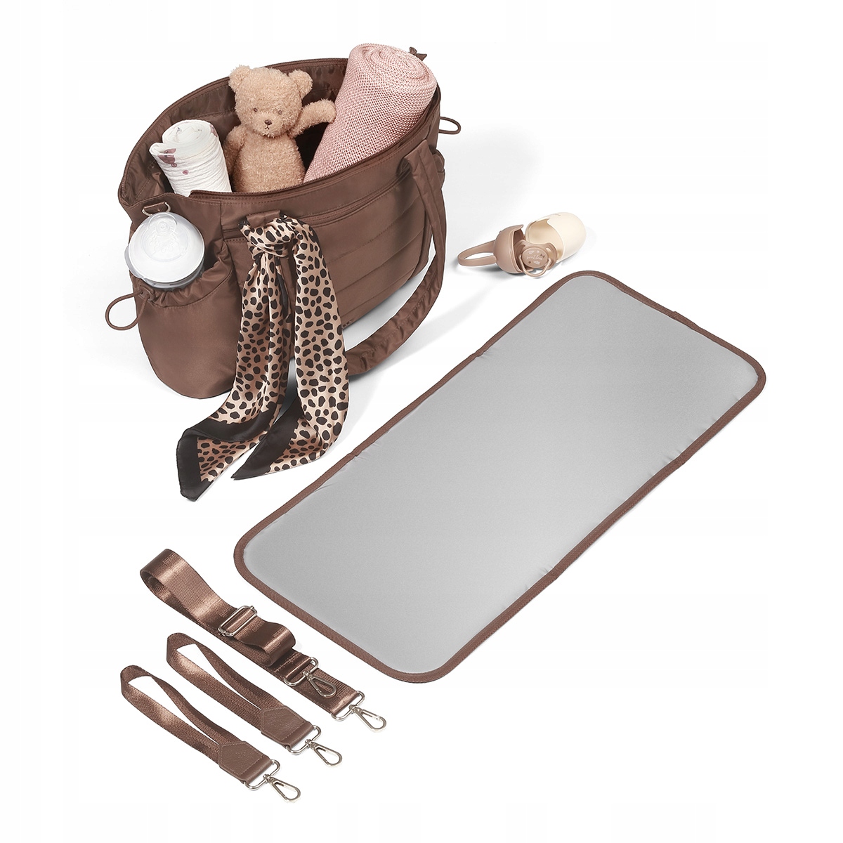 Познакомьтесь с нашей сумкой для коляски CAMI – в модном шоколадном оттенке, с нежным шарфом с гепардовым принтом. Это квинтэссенция спортивной элегантности. Создана специально для активных мам, которые ищут вместительную, удобную, функциональную и стильную сумку. Благодаря большой вместительности, 10 карманам и шнурку для ключей или соски в нее можно упаковать все необходимое для мамы и малыша. Повесьте его на коляску или носите каждый день.
