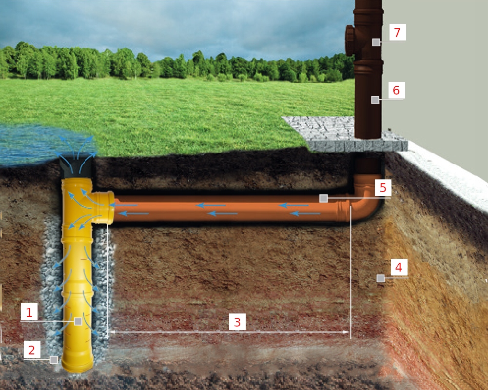 При отсутствии водоснабжения в столовую систему дождевой воды простым и дешевым решением является использование переполнения и укоренных скважин, разработанных скидками. Установка стекает воду от зданий (до нескольких десятков метров), а перенос рассылает ее в область. Он может быть установлен в невидимом месте. Распределяя поверхностные воды, он также орошает выбранную область - фрагмент сада. Система также вызывает постоянную сушку установки и предотвращает ее замораживание, поэтому дренажные трубы могут быть мелкими под поверхностью земли.