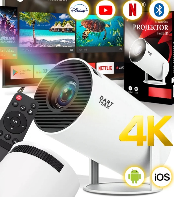 Исключительным преимуществом проектора является полная совместимость с операционными системами iOS и Android, что открывает большие возможности для пользователей. Благодаря этому вы будете легко и быстро получить доступ к популярным приложениям, таким как Netflix, Disney+, YouTube и Google. Это позволяет потоковым фильмам, сериалам и слушанию музыки. Проектор оснащен постом USB и HDMI. Встроенный динамик дополнительно диверсифицирует аудиовизуальный опыт. Наш проектор имеет регулируемый угол проекции до 180 °. Благодаря этому вы имеете полный контроль над отображенным изображением, и вы можете адаптировать его местоположение к вашим индивидуальным потребностям.