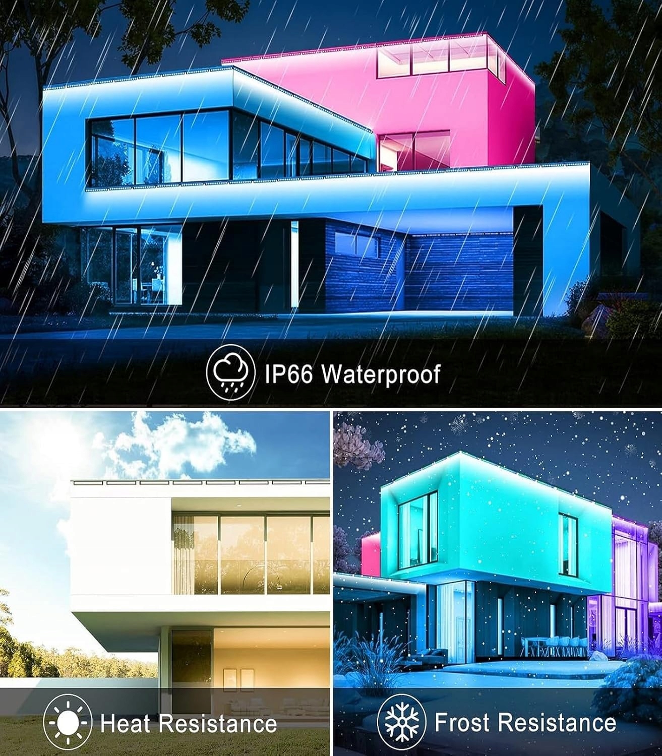 【IP66" водонепроницаемый, можно использовать в любое время года. Основная часть прожектора. Светильник для вечеринок водонепроницаем в соответствии со стандартом IP66, а уплотнительная силиконовая прокладка усилена для повышения уровня водонепроницаемости и более эффективного достижения уровня водонепроницаемости IP66. рассеивание тепла с помощью отражателя RGB. Светодиодный прожектор MEIKEE RGB можно использовать круглый год в помещении и на открытом воздухе.