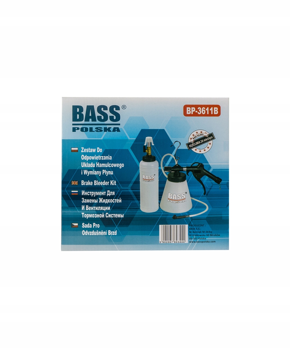 Комплект позволяет одному человеку заполнять и прокачивать тормозную систему, используя давление пневматической системы.