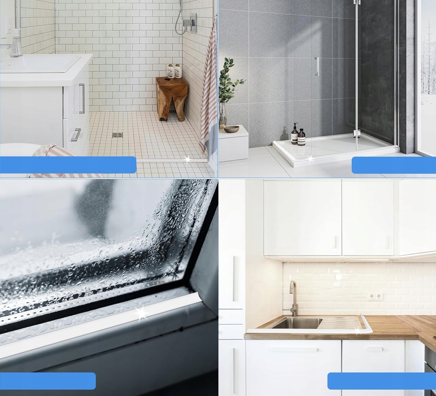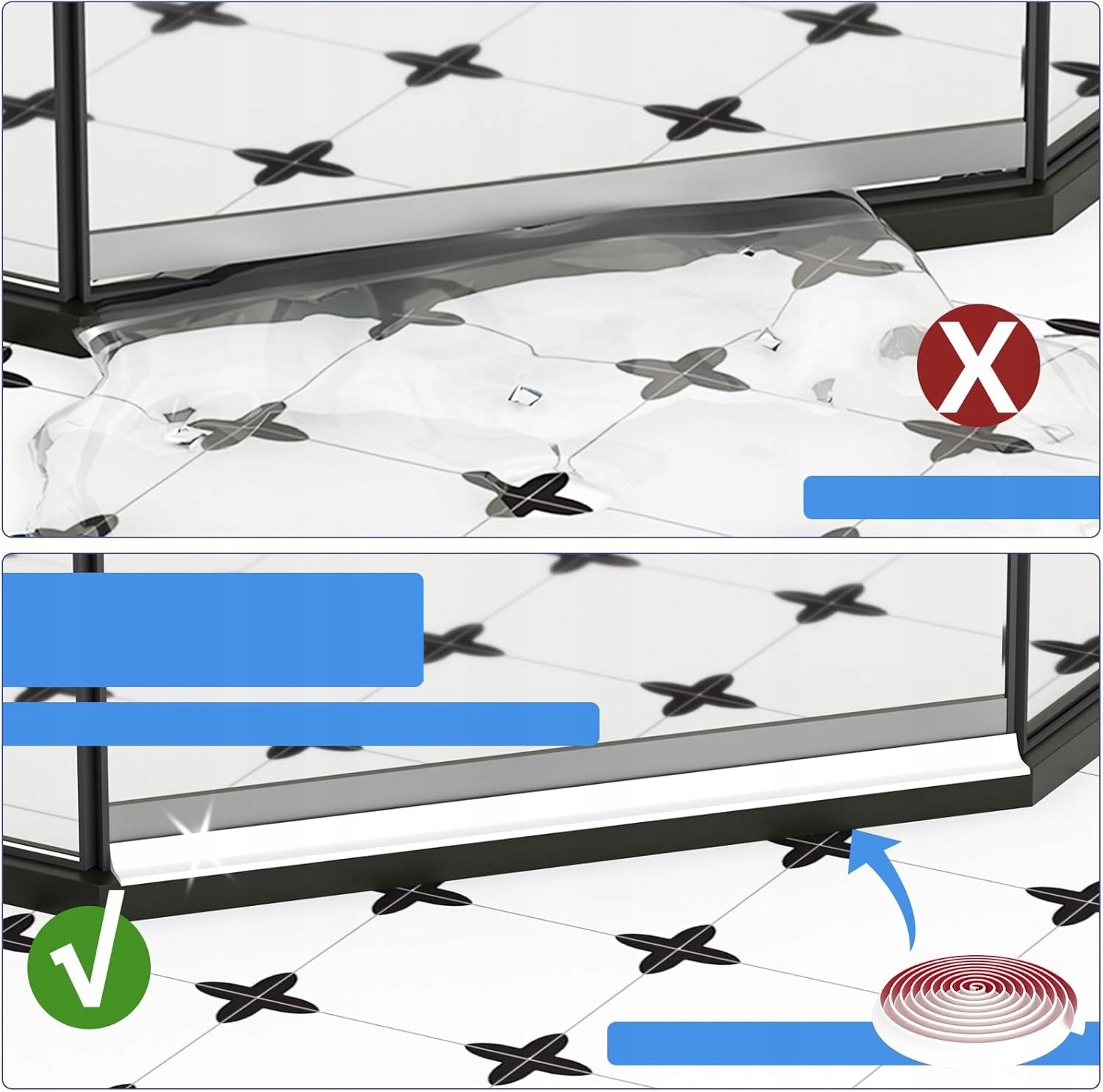 ➡ Гибкий силикон адаптируется к неравномерности, устраняя зазоры - даже слегка изогнутая земля не вызывает утечек, потому что лента работает с поверхностью. Пользователю не нужно беспокоиться о «протекающих местах» или постоянной коррекции. Это настоящая экономия воды и защита пола от хронической влаги. Существует разница в первом использовании в виде зоны сухого душа.