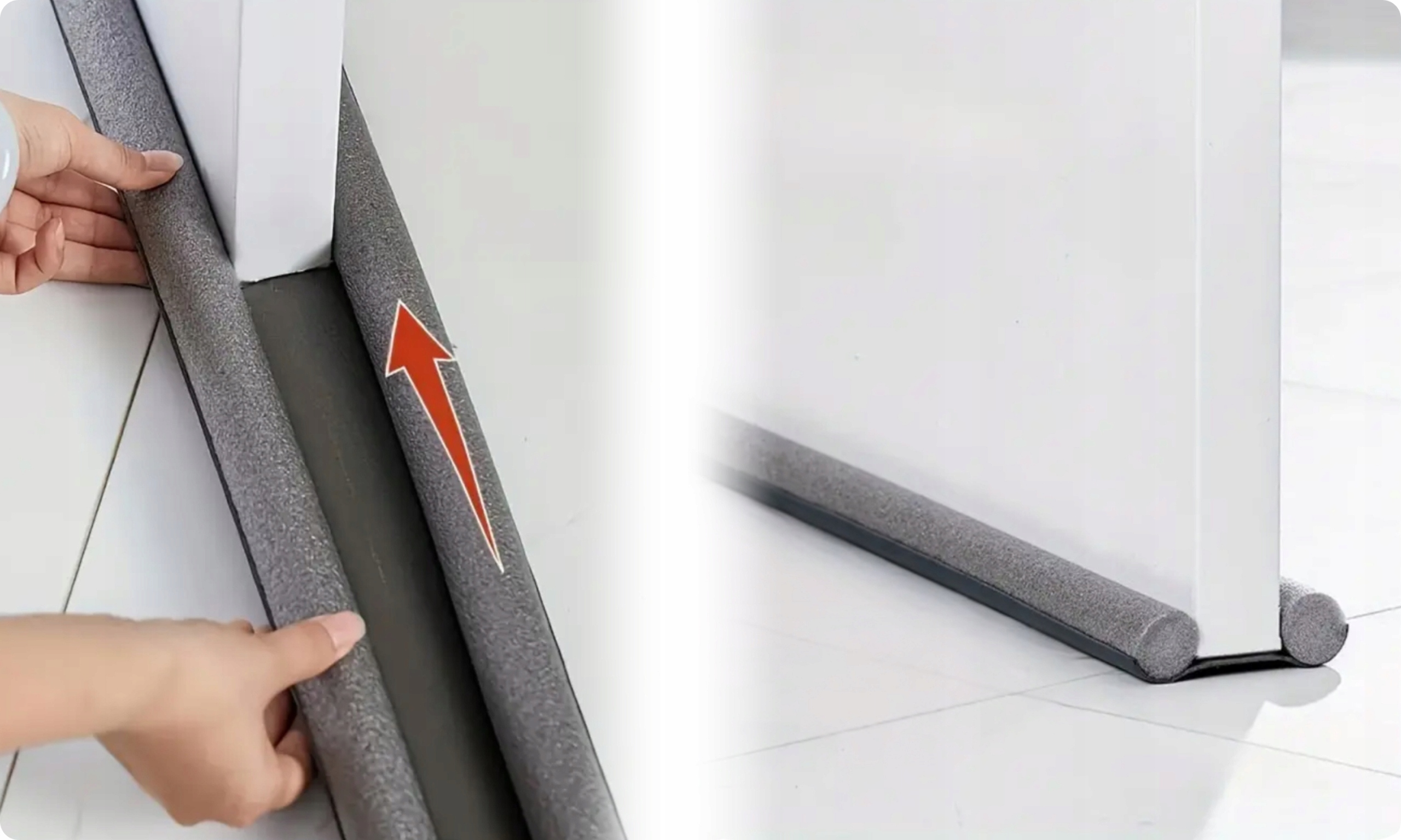 Просто отрежьте пенопласт нужной длины и просуньте его под дверь или окно. Подходит для всех типов полов – мягкий материал не царапает поверхность. Простой и эстетичный дизайн ненавязчив.