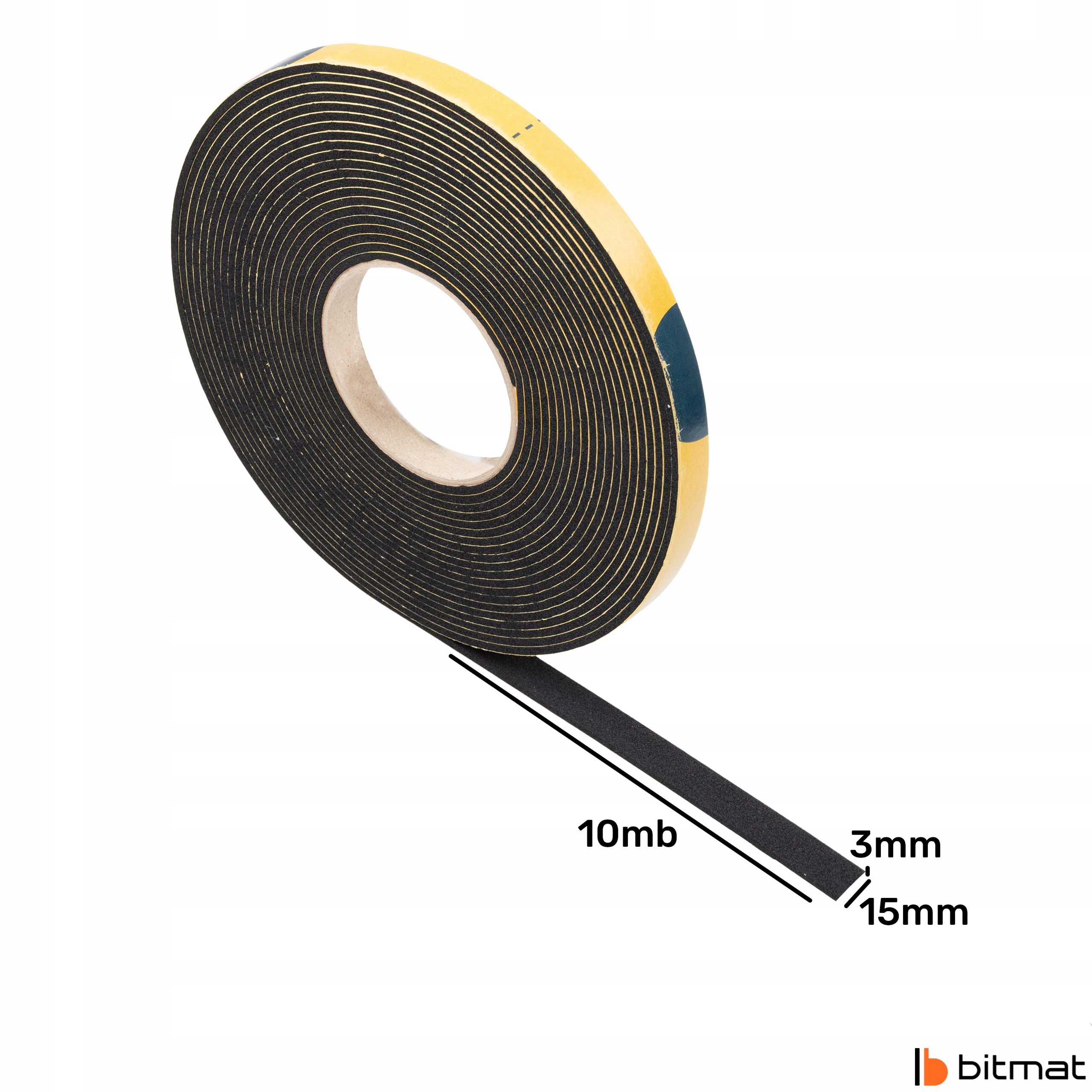 1x Лента самоклеящаяся уплотнительная из вспененного EPDM производства Bitmat толщиной 3 мм, шириной 15 мм и длиной 10 м
