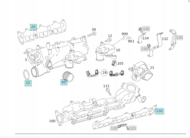 2. Оригинальные прокладки впускного коллектора с разъемом и уплотнительными кольцами