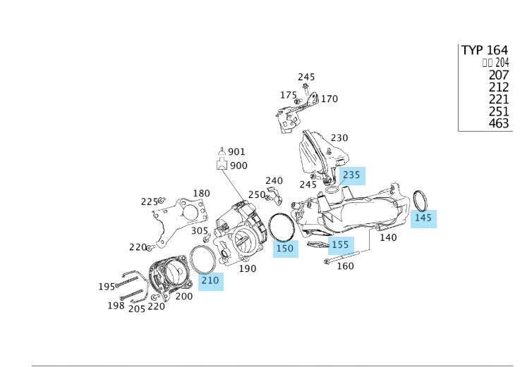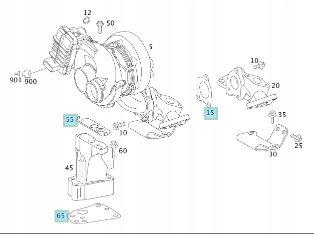 1 . Оригинальные прокладки турбокомпрессора (верхние и нижние, впускное, выпускное, колено)