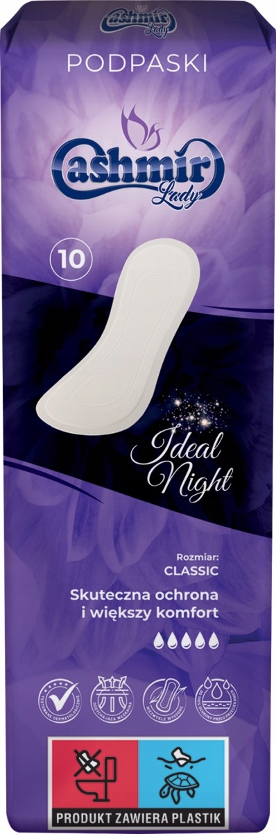 Классические гигиенические прокладки Cashmir Night правильной формы с крылышками предназначены для женщин, ценящих комфорт и безопасность, особенно в ночное время.