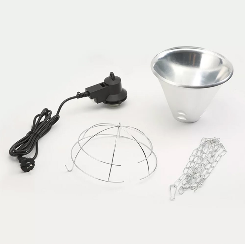 【Безопасность и надежность】 Монтажная цепь и решетка длиной 2 м образуют встроенную крышку, защищающую домашних животных от ожогов или столкновений с отражателем. Кабель имеет внушительную длину — 2,5 метра, что позволяет проводить монтаж даже в помещениях, где электрическая розетка не находится непосредственно рядом с лампой.