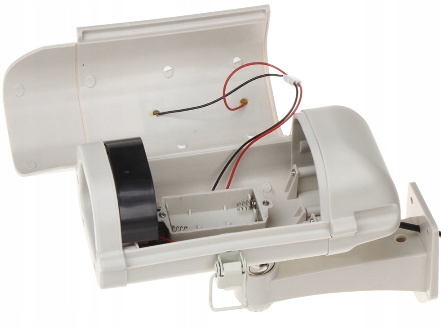 Встроенный светодиод, который мигает и светится красным, сигнализирует о работе устройства, благодаря чему макет камеры выглядит очень реалистично. Диод питается от встроенной солнечной панели, которую можно отключить в любой момент, или от батареек/аккумуляторов типа АА, размещенных под корпусом.