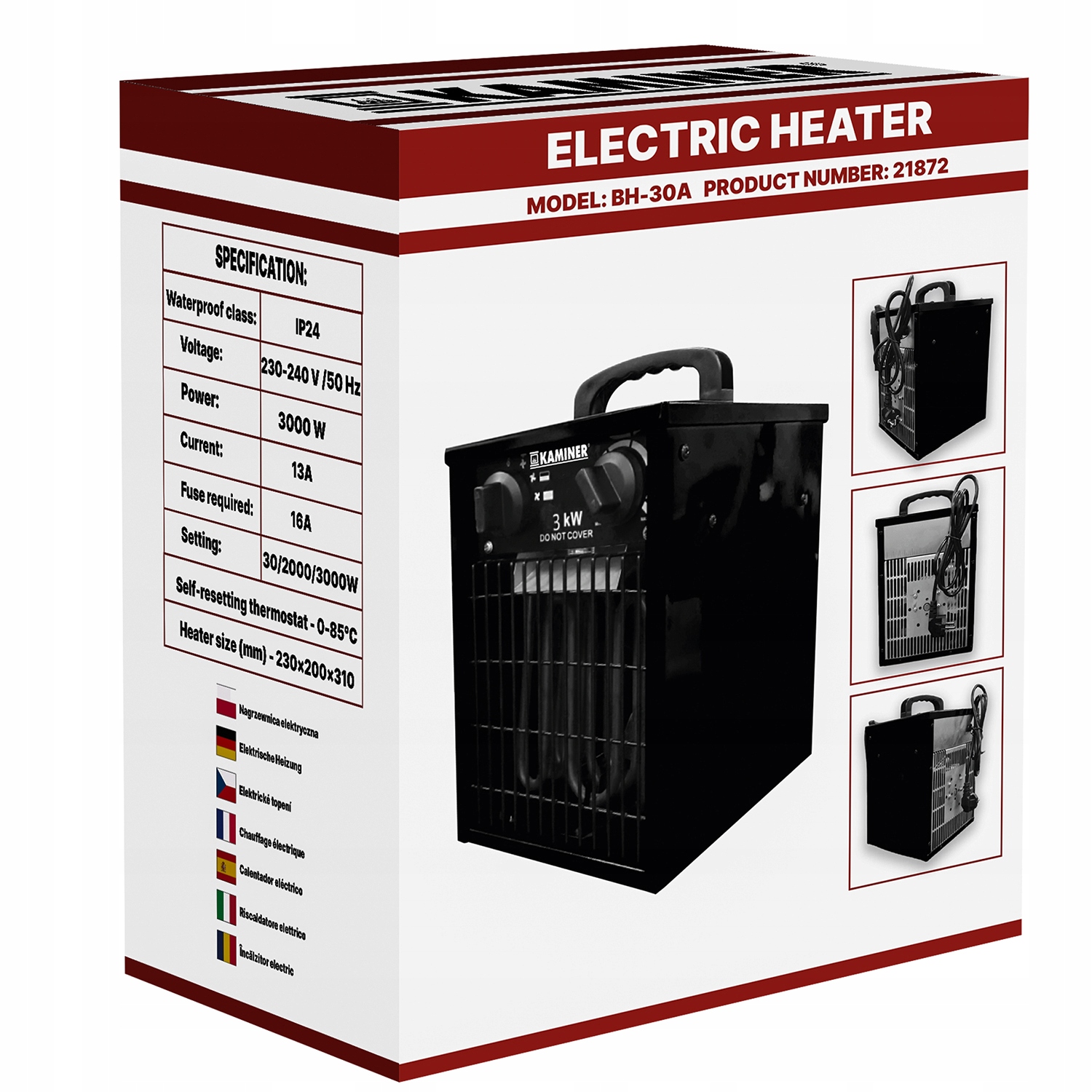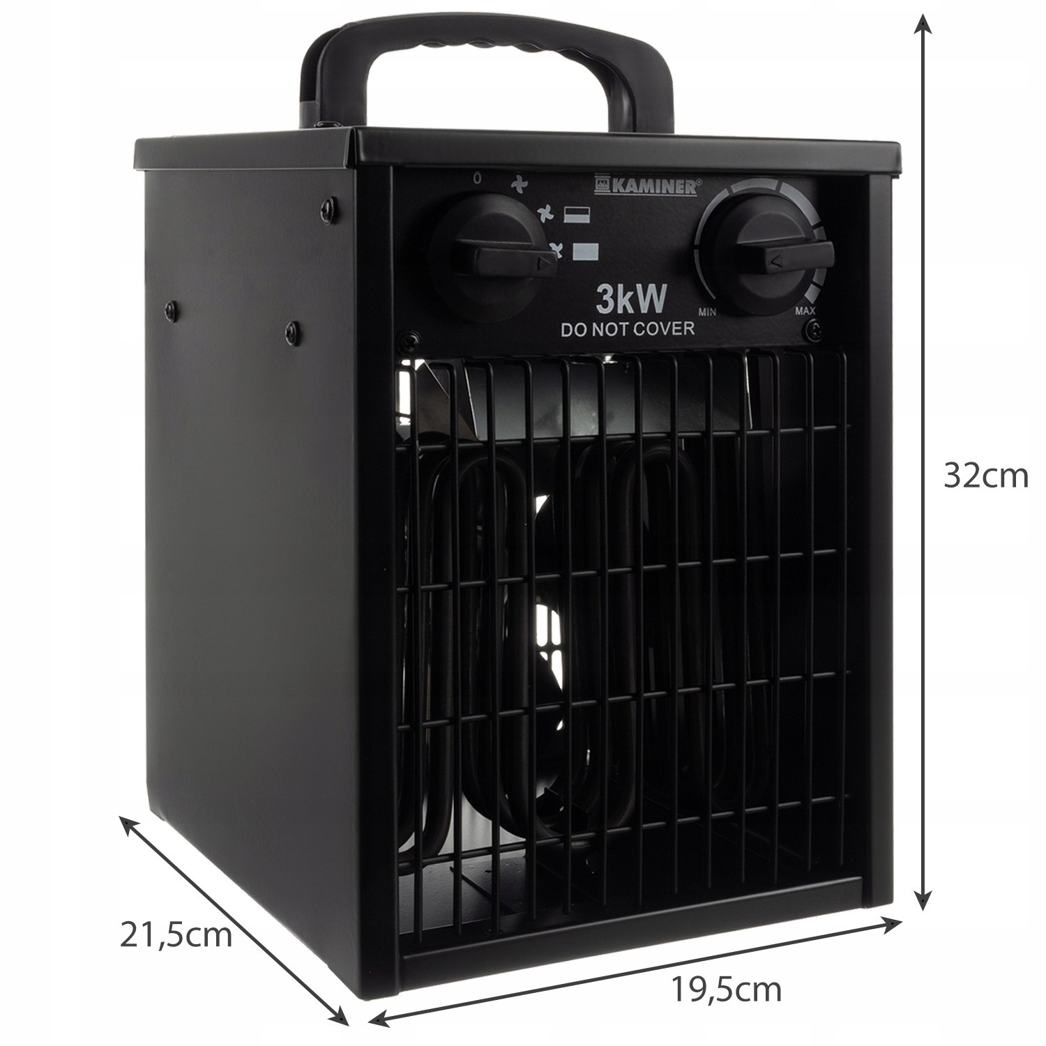 - ТЕХНИЧЕСКИЕ ХАРАКТЕРИСТИКИ - Мощность устройства: 20Вт/2000Вт/3000Вт; расход воздуха: 514м3/ч; термостат: да; защита от перегрева: да; защита от брызг: IPX4; конструкция: корпус из стального листа, покрытый термостойким лаком; напряжение: 220 – 240 В/50 Гц; размеры устройства: 32 х 21,5 х 19 см; вес: 3,6 кг; вес в упаковке: 4 кг.