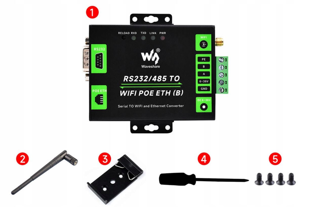Дополнительная информация, настройка на сайте Wiki: www.waveshare.com/wiki/RS232/485_TO_WIFI_ETH_(B)