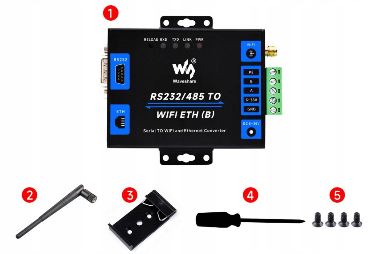 Дополнительная информация, настройка на Вики-сайте: www.waveshare.com/wiki/RS232/485_TO_WIFI_ETH_(B)