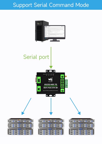 RS232/485 в порт Ethernet и WiFi Только один из портов RS232 или RS485 может одновременно передавать данные в порты Ethernet и WiFi.