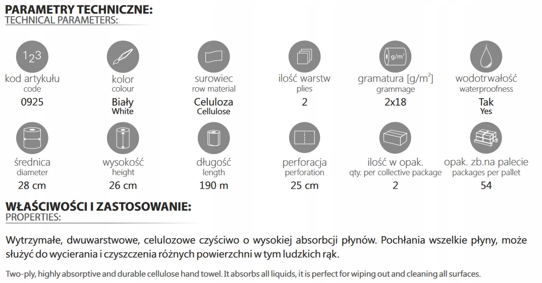 Промышленное чистящее бумажное полотенце 1 Rolka -это высококачественный продукт, предназначенный для профессионального использования в различных промышленных отраслях, семинарах, автомобильных услугах или местах, где существует необходимость в эффективном поглощении жидкости и очистке поверхности.
