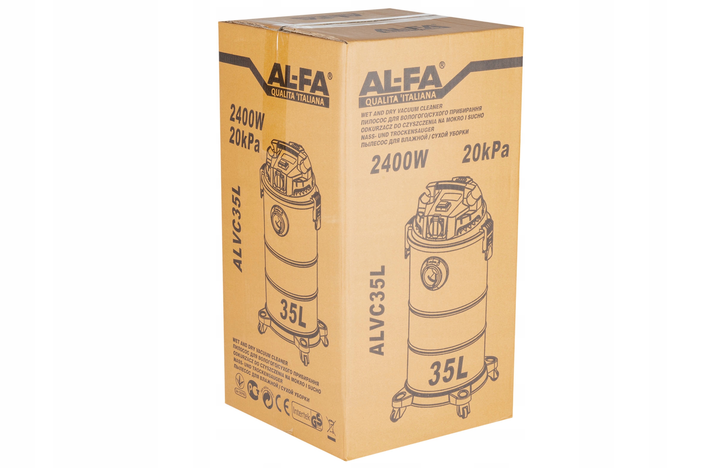 Промышленный пылесос AL-FA идеально подходит для уборки влажных и сухих поверхностей. В этом устройстве используется высокоэффективный электродвигатель мощностью 2400 Вт и прочный резервуар из нержавеющей стали.