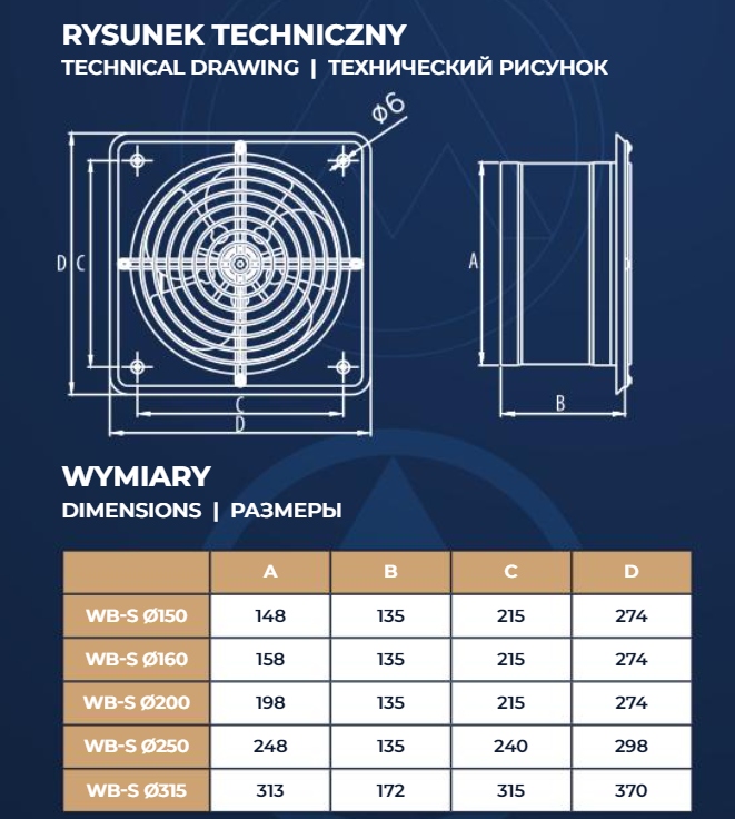 Промышленный вытяжной вентилятор 315fi, производительность до 1000 м3/ч ПОЛЬСКИЙ ПРОДУКТ