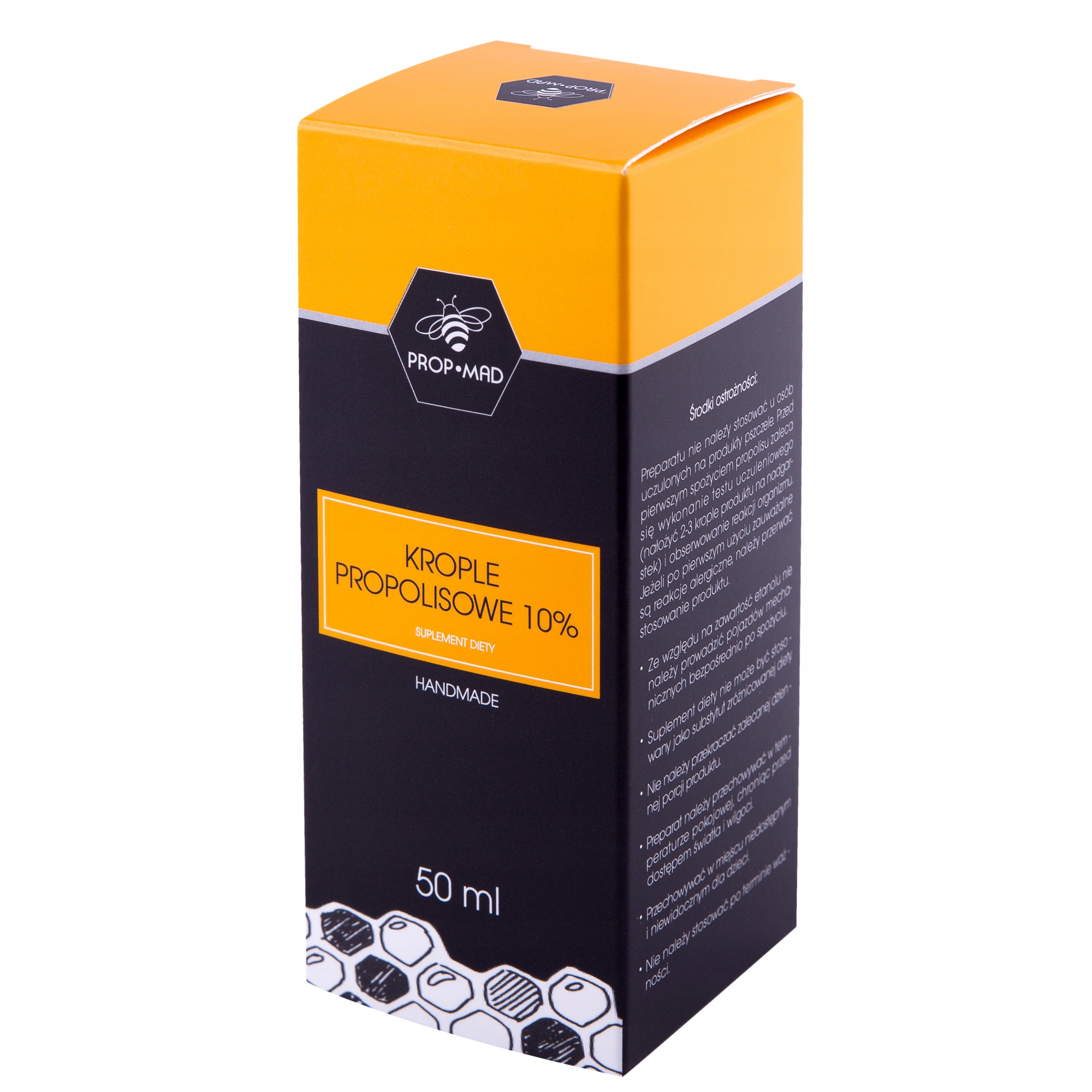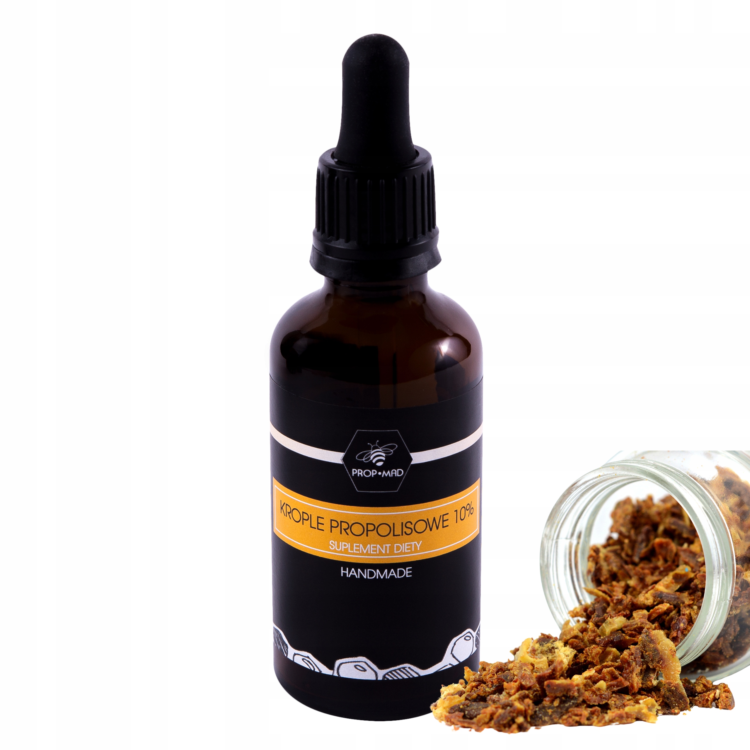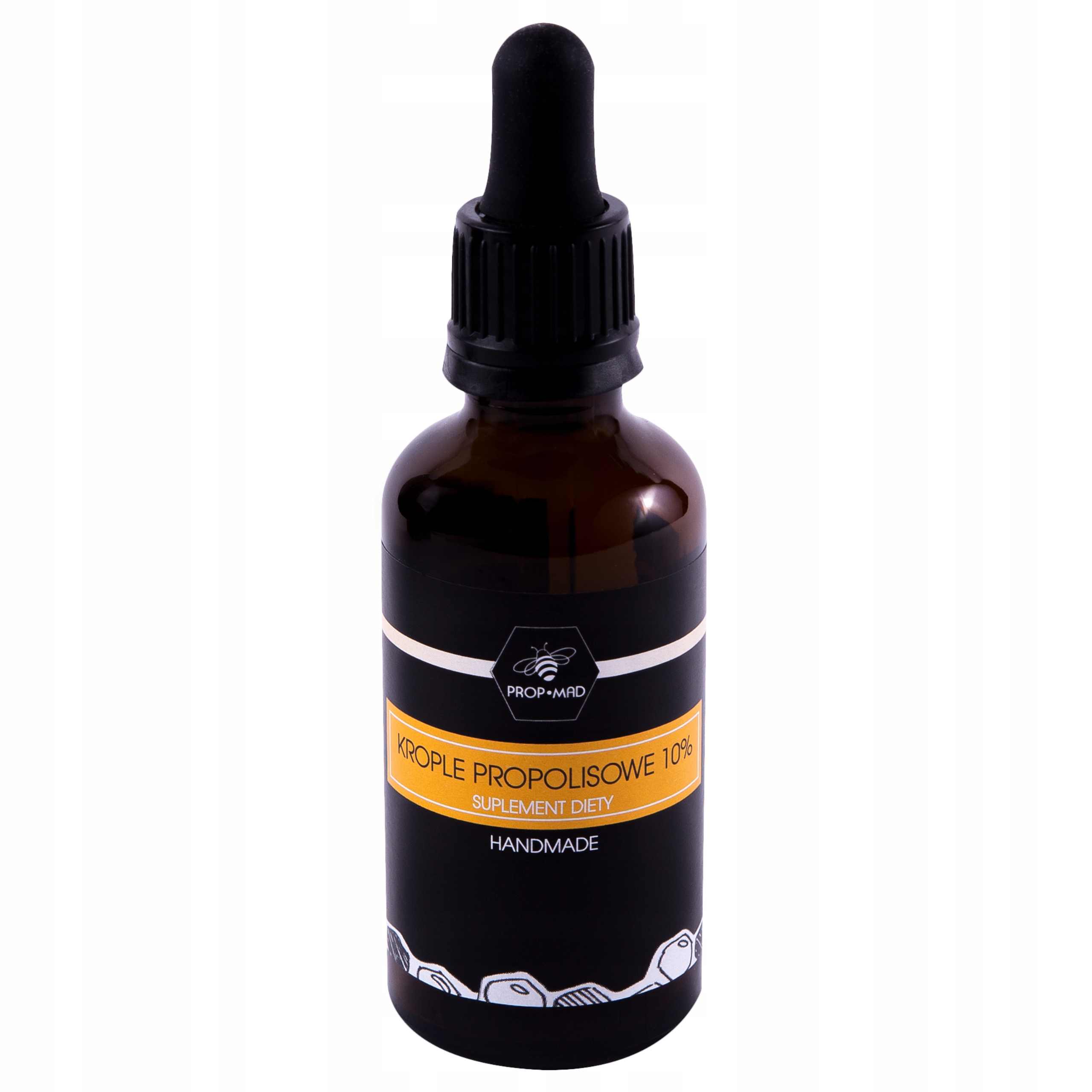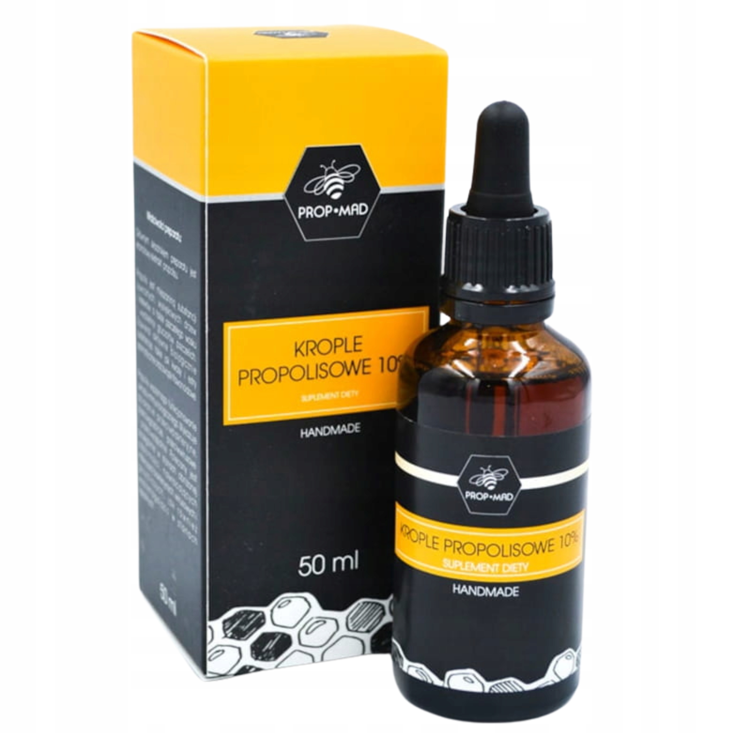 Капли Прополис 10% — раствор прополиса, выпускается в стеклянном флаконе объемом 50 мл, оснащенном пипеткой-капельницей. Продукт содержит до 10% прополиса, что делает его концентрированным источником полезных для здоровья ингредиентов природного происхождения.
