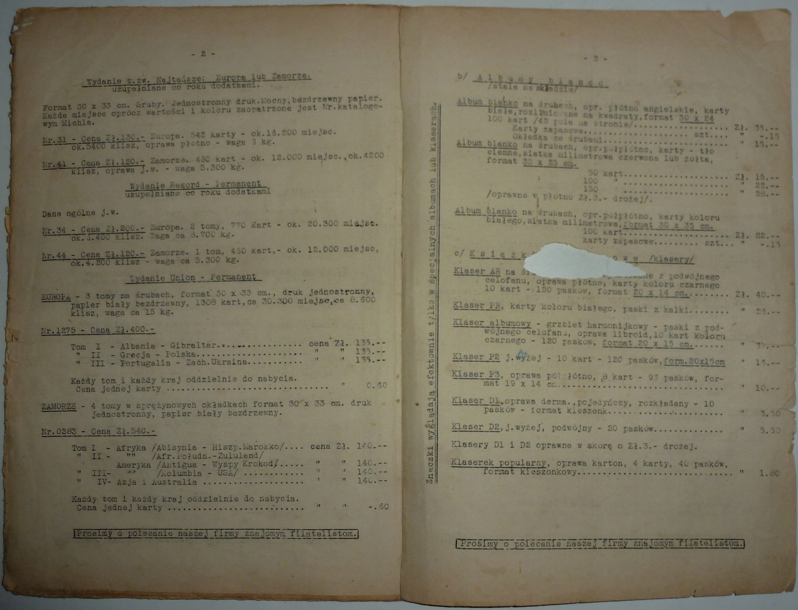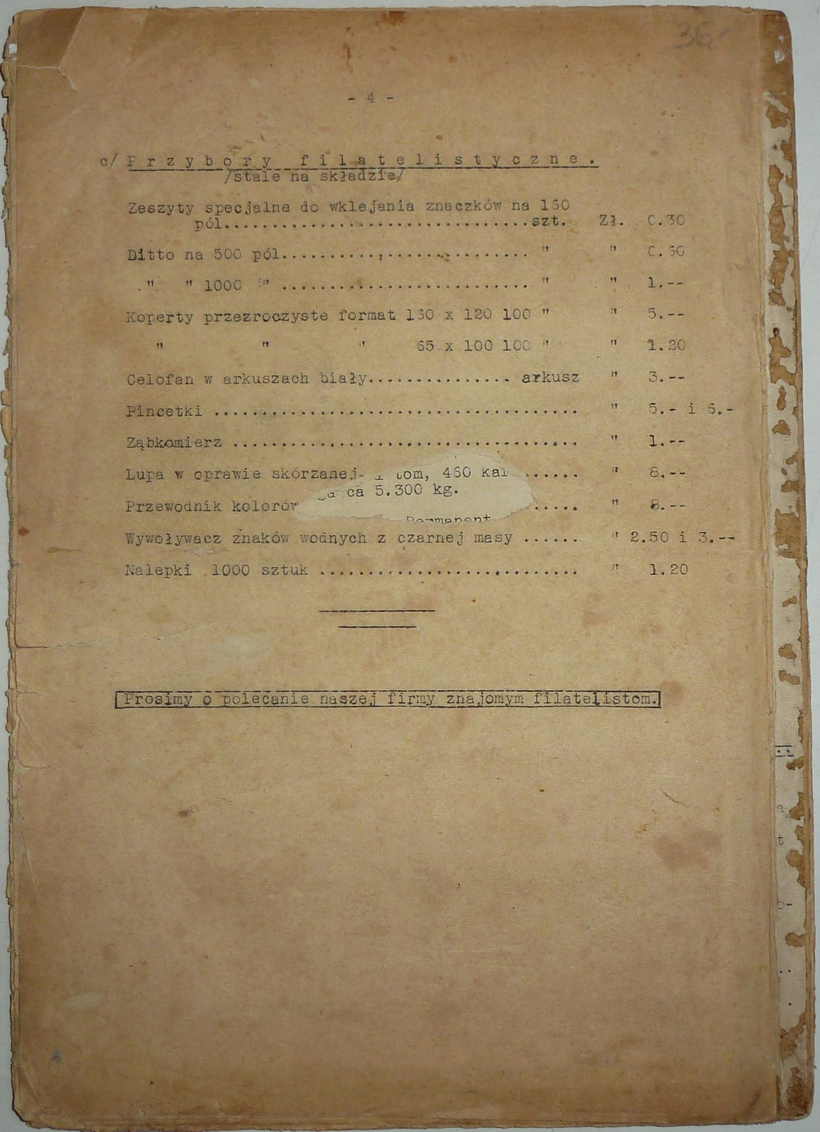 Примечания: машинописный текст с предложением пошлин, надбавок, авиационных и иностранных марок, прайс-лист на упаковку, прайс-лист на альбомы и аксессуары...