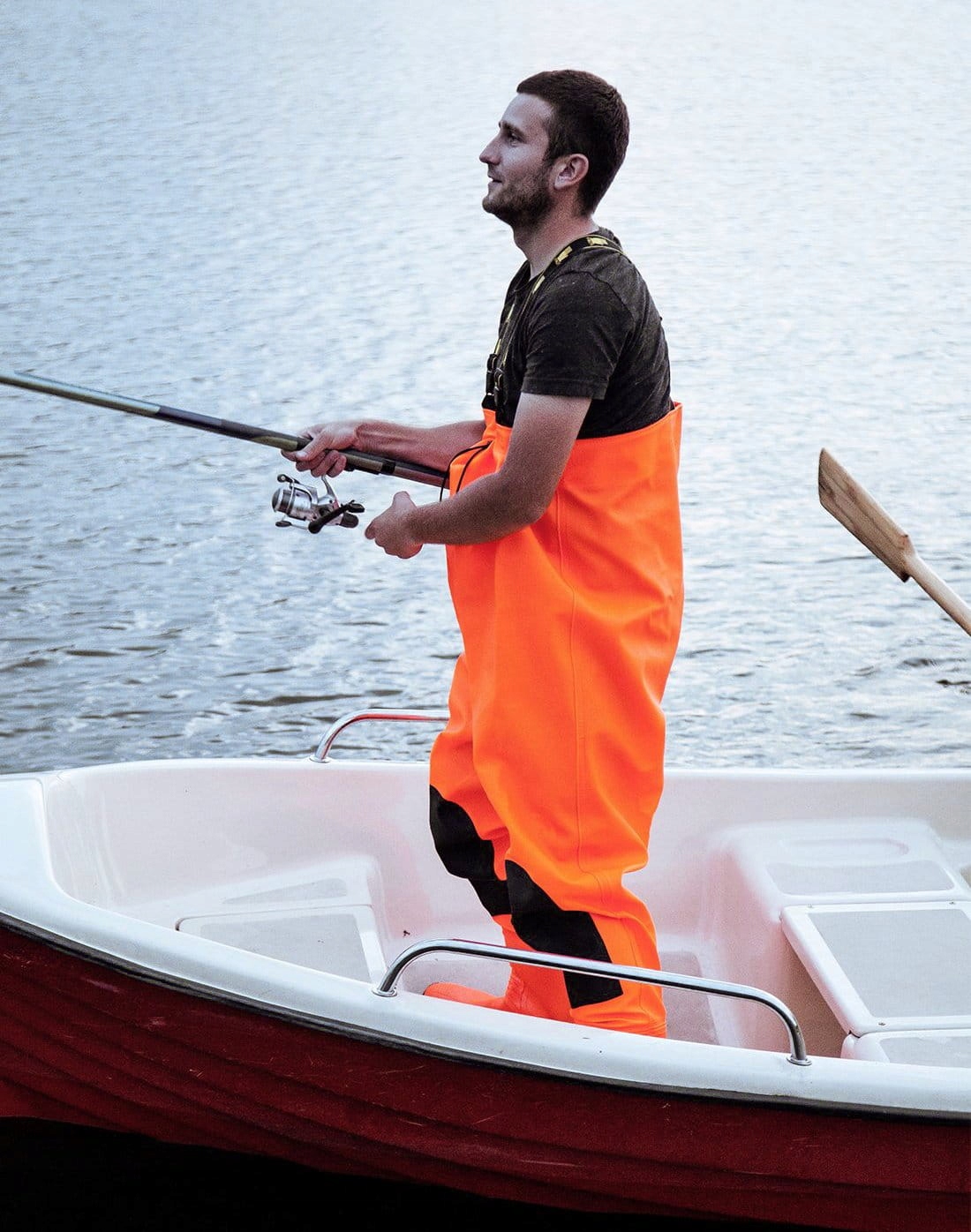 SBM01 FLUO MAX S5/ PROS. ВЕЙДЕРЫОтличные, прочные вейдерсы с неразъемными ботинками, усиленными коленями, регулируемыми лямками и резинкой для регулировки обхвата груди. Он доступен в флуоресцентном оранжевом цвете, что повышает видимость в сумерках и в затененных местах. Изготовлен из PLAVITEX HEAVY DUTY FLUO (вес 700 г/м2), материала на полиэфирной основе, с ПВХ-покрытием с одной стороны. Материал отличается повышенной устойчивостью к трению и изгибу при отрицательных температурах до -50°С. Обеспечивает полную защиту в неблагоприятных погодных условиях. Внутренний карман позволяет хранить документы или мелкие предметы, которые вы хотите иметь под рукой. Обхват можно регулировать с помощью шнурка на уровне груди. Технология двусторонней сварки повышает прочность швов. Полностью водонепроницаемая, позволяет ходить по воде. Они характеризуются очень хорошими противоскользящими свойствами. Твердая подошва с толстым протектором гарантирует устойчивость даже на мягких и скользких поверхностях. Для безопасности ног от травм вейдерсы оснащены противоударной вставкой и подноском, защищающим пальцы ног от ударов с энергией 200 Дж. Прочный материал обеспечивает длительное и комфортное использование, а конструкция позволяет быстро надевать и снимать. Модель, проверенная на рыбалке, рыбалке, в сельском и лесном хозяйстве. Удобные и водонепроницаемые, свободно передвигающиеся, кулики незаменимы для рыболовов, ловящих рыбу на реках, используются для рыбалки и тяжелых рыболовных работ. Они предоставляют наибольшие возможности в рыболовной сфере. Незаменимое снаряжение для каждого рыболова, который хочет эффективно ловить рыбу спиннингом или нахлыстом. Они также подходят для мытья и очистки водопроводных, канализационных систем и коммунальных служб.