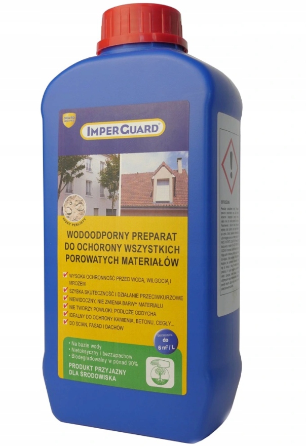 ImperGuard® — высокоэффективная пропитка, предназначенная для защиты стен, фасадов и крыш от влаги. Пропитку можно использовать снаружи и внутри помещений, на поверхностях и кровле. Идеально подходит для гидроизоляции пористых материалов. Imper-Guard® глубоко проникает в поры материала, делая его устойчивым к проникновению воды и грязи, и тем самым предотвращает разрушение материалов при изменении погодных условий, кислотных дождях, эрозии и циклах замерзания/оттаивания. Защита также предотвращает рост мха и лишайника, образование высолов и известкового налета.