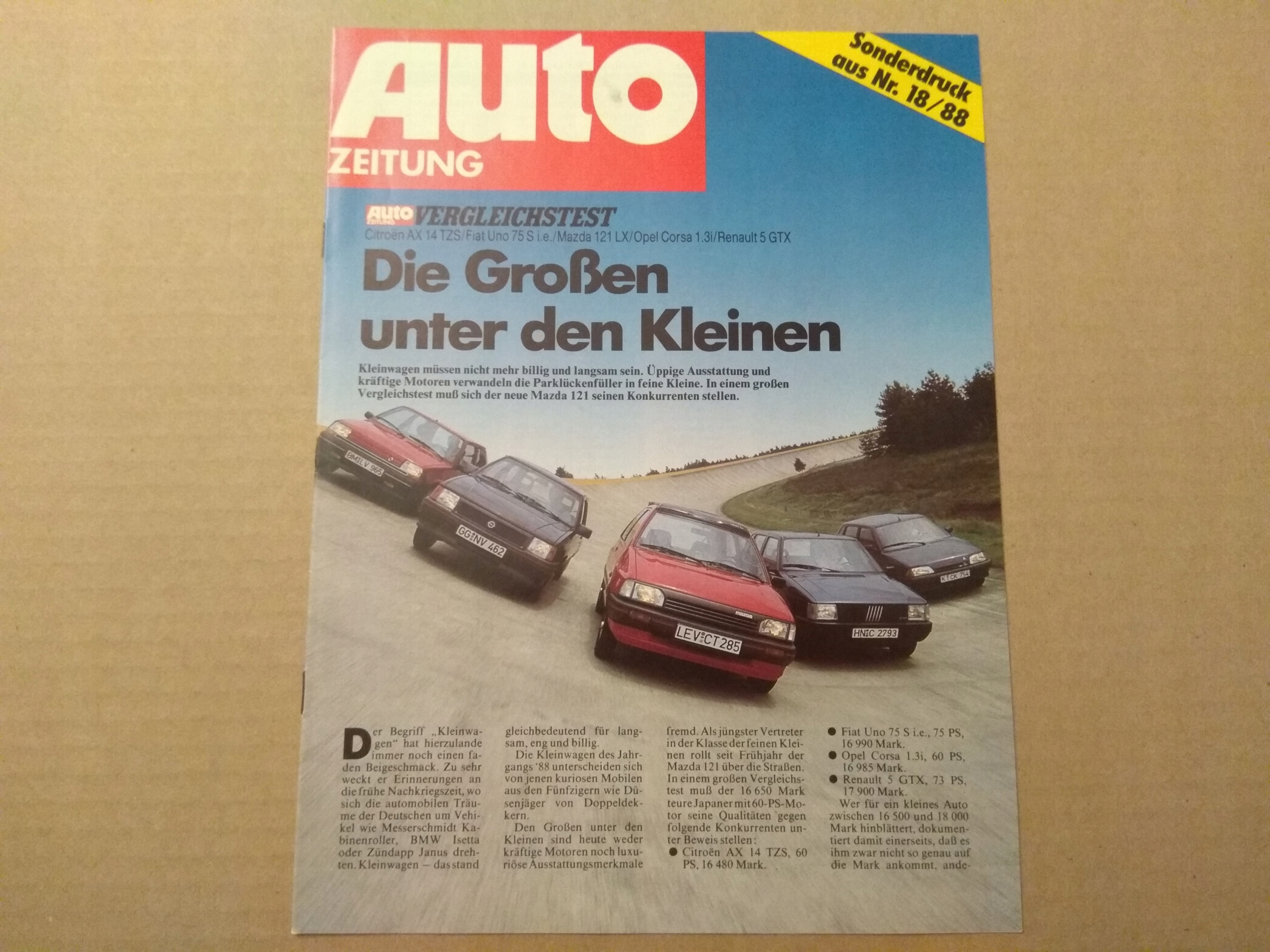Проспект - ТЕСТ - CITROEN AX FIAT UNO MAZDA 121 OPEL CORSA RENAULT 5 1988 г.