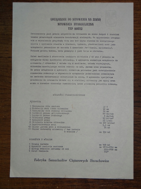 Гидравлический заклепочник PROSPECT STAR FSC STARACHOWICE тип 90022