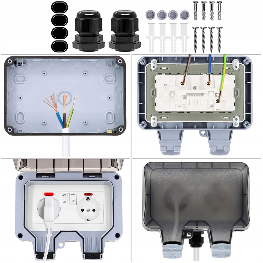 🌈🌈 -Устойчивый к внешней выходу IP66: благодаря покрытой закрытой конструкции, имеет степень защиты IP66, что обеспечивает полную водостойкость и пыльно -надежный. Подходит для использования в влажных комнатах или защищенных внешних участках. Глубина 28,5 мм обеспечивает достаточно места для плагинов различных форм и позволяет легко закрывать крышку.