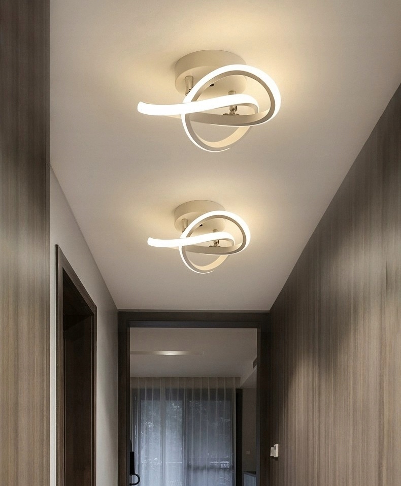 Замечательный декоративный элемент – модернистский светодиодный потолочный светильник. Все световые точки расположены в тщательно отделанных и, прежде всего, энергосберегающих светодиодных лентах. Это отличная идея для украшения современных помещений или осветления темных углов. Он идеально вписывается в сдержанный интерьер.