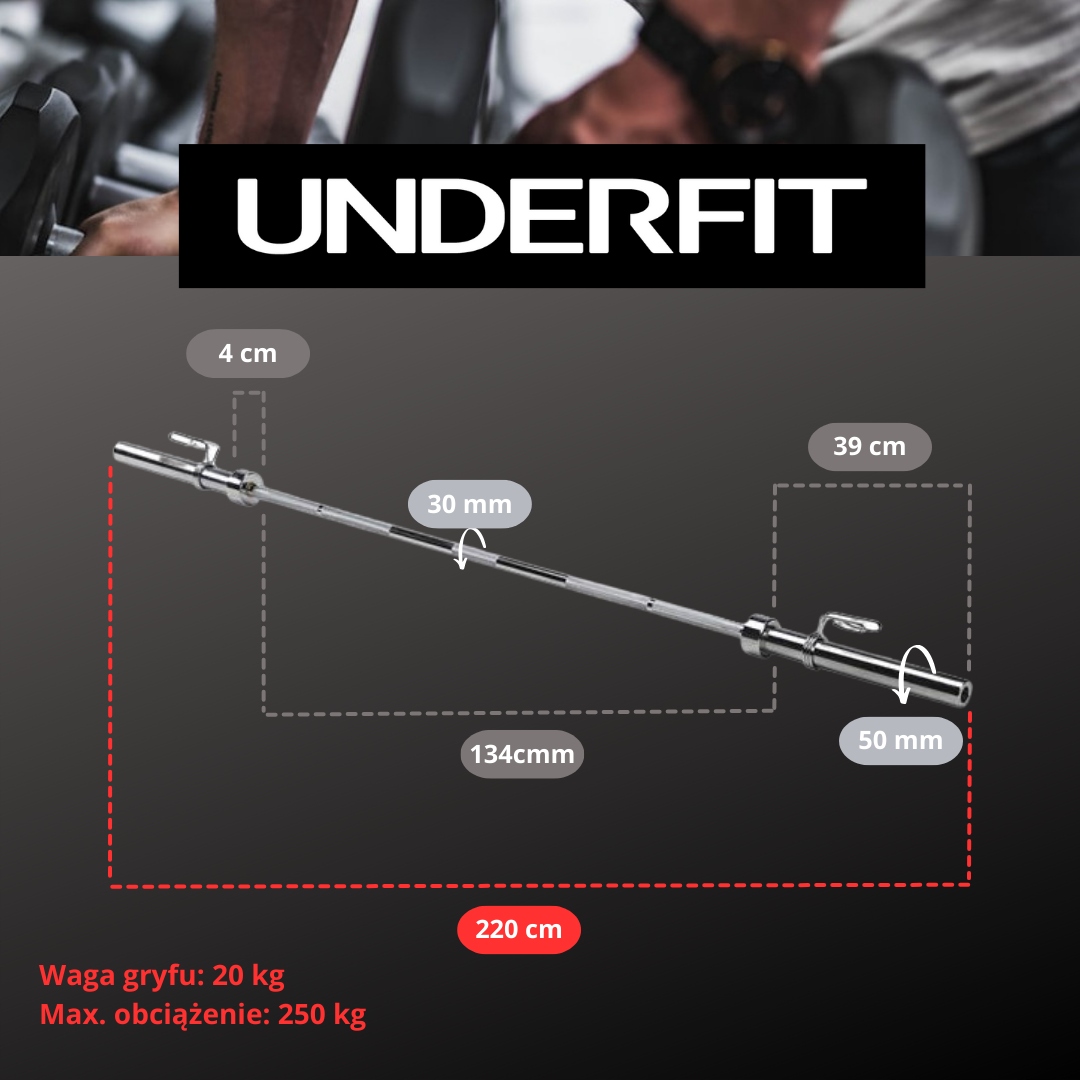 Олимпийский Griffin Simple Bindate с весенними зажимами - идеальное оборудование для профессиональных силовых тренировок. Гриффин был изготовлен из хромированной стали, обеспечивая силу и комфорт упражнений, не опасаясь образования солнца или деформаций. Поддержание своего появления в течение очень длительного периода использования гарантирует процесс хрома, который является лучшей защитой от ржавчины. Размеры оборудования были уточнены таким образом, что оно максимально эффективно. Вы можете работать над своей фигурой с большим весом без страха! Чтобы обеспечить некоторое и удобное удержание, ее захватывающая часть тщательно упала. Штанга не проскальзывает, и вы можете уделять все свое внимание правильному упражнениям. Безопасность во время тренировки также гарантируется специальными рукавами и пружинными зажимами, защищающими от скользящих нагрузок во время тренировки.