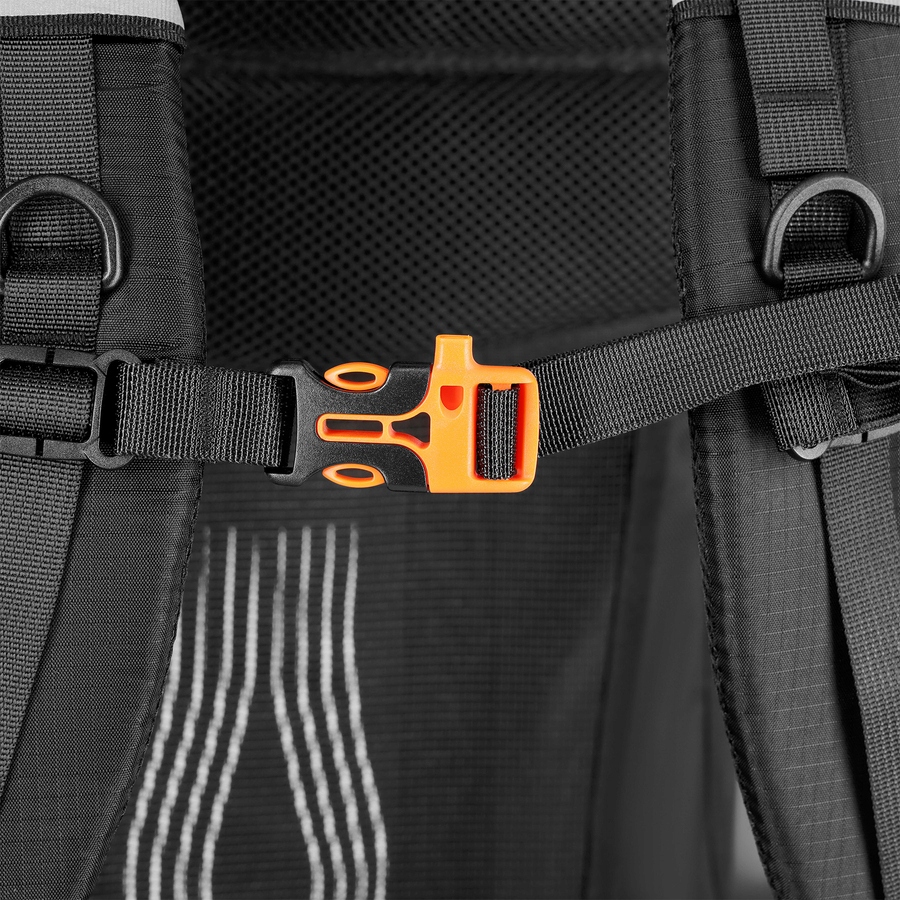 - дополнительно: дождевик в специальном кармане молнии, защитного свистка, съемной, дышащей вентиляционной панели с рамой, ручкой буклака, отражающими элементами, стриптистерами для дополнительных Оборудование