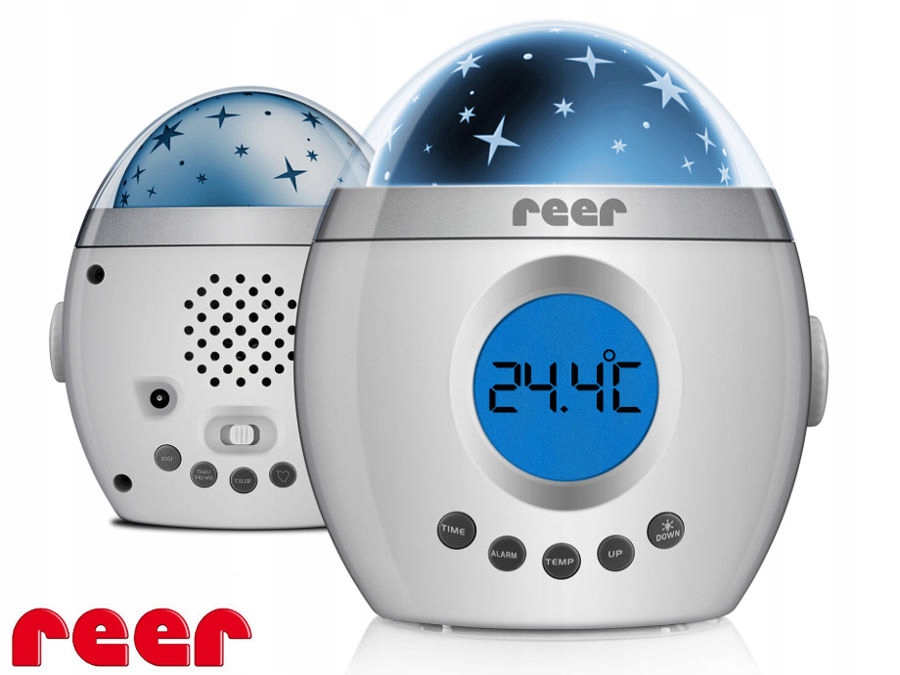 это больше, чем просто прикроватная лампа. Он бросает красочные созвездия вокруг стен, играет мелодии и звуки природы, также имеет радио с будильником и термометром. h1>