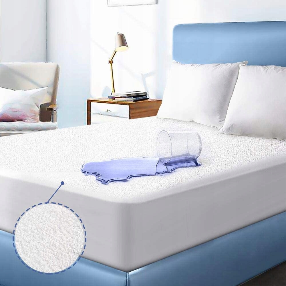 Поверхность нашего встроенного защитного чехла на матрас не нарушает внешний вид матраса. Наши наматрасники также предназначены для всех типов матрасов, включая пенопластовые, латексные и пружинные. Наматрасник премиум-класса - 100% водонепроницаемый - защита от пота, жидкостей и пятен, намокания кровати. Мягкий, дышащий и прохладный. Тонкий и легкий наматрасник обеспечивает мягкое и комфортное спальное место, не меняя ощущения от матраса.