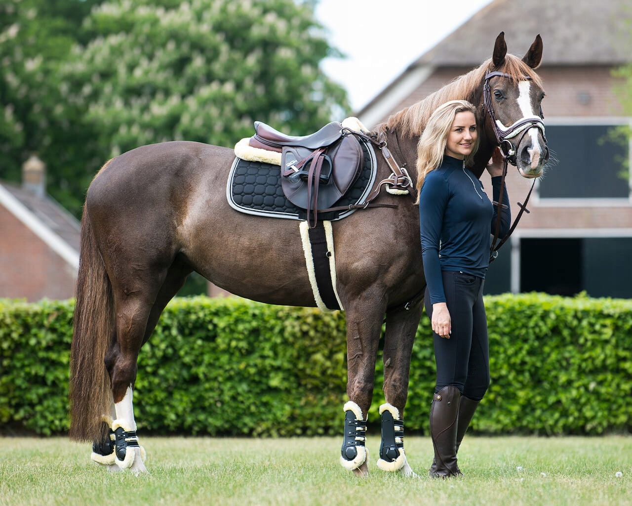 - Подкладка из синтетического меха - нежно воздействует на кожу лошади, снижает риск ссадин и раздражений, что делает их идеальным решением для чувствительных животных.