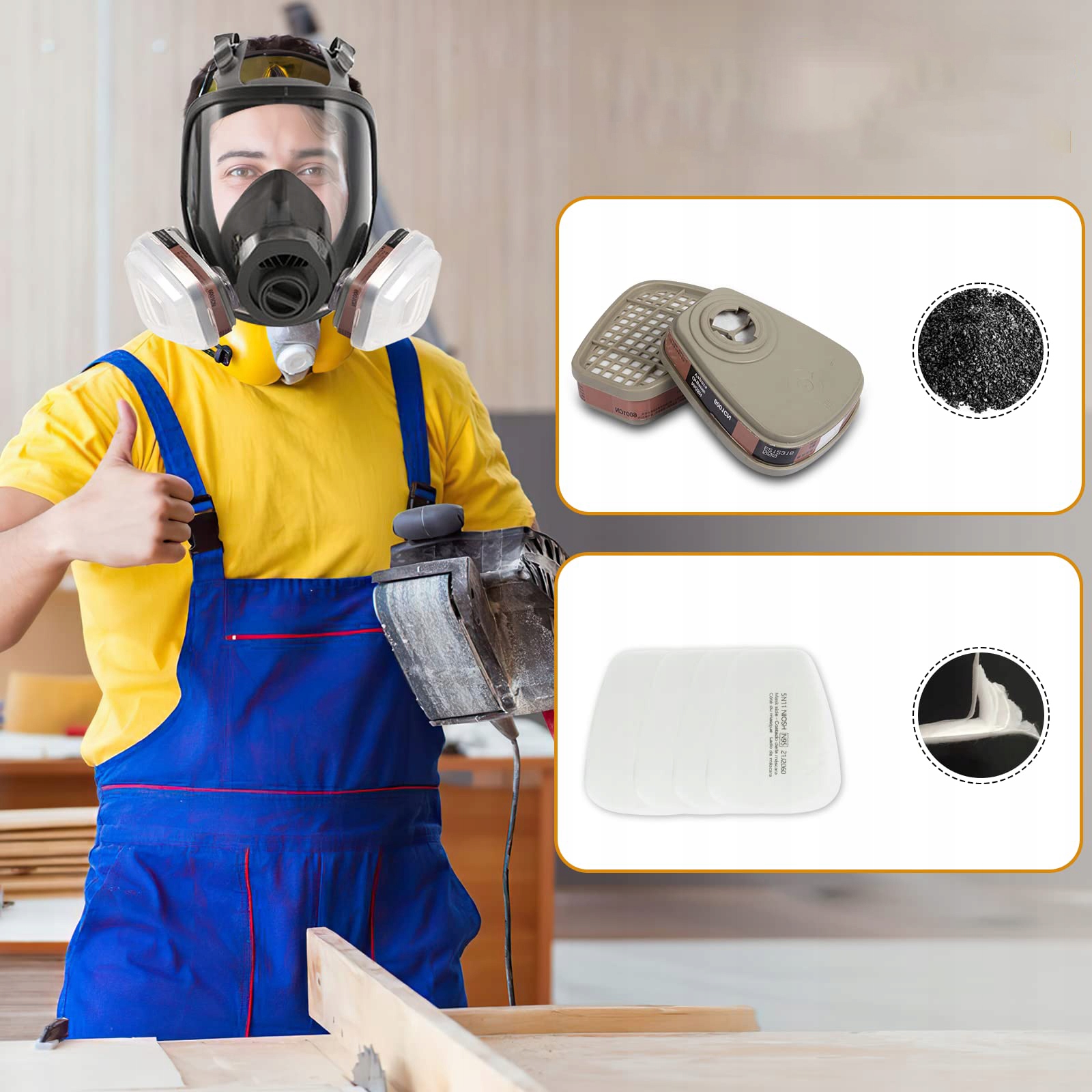 • ✔️【Множество сценариев применения】: ядро ​​противогаза и химические вещества подходят для промышленности, сельского хозяйства, переработки, деревообработки. , окраска распылением, сварка, эпоксидная смола, полировка и распиловка.