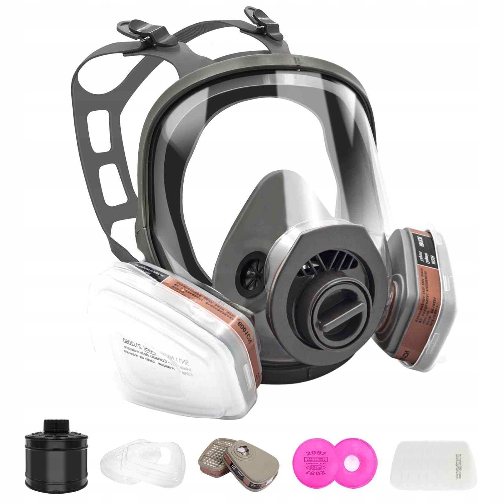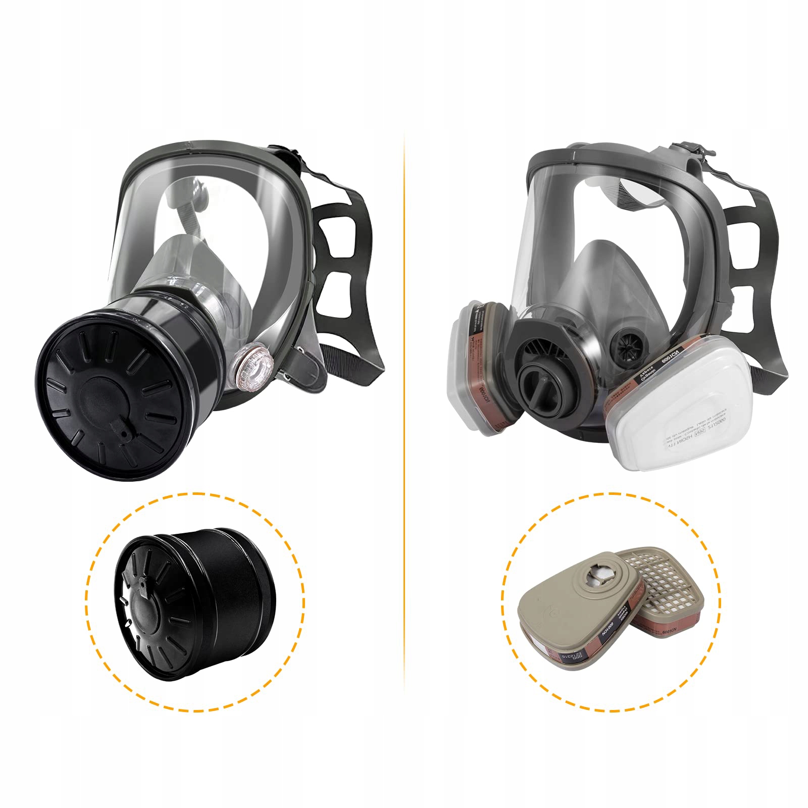 • ✔️【Эргономичный и удобный】: Противогаз изготовлен из высококачественной резины и удобен. носить . Регулируемое оголовье подходит большинству людей. ПРИМЕЧАНИЕ. С этим полнолицевым респиратором нельзя носить очки. После ношения необходимо провести испытание на герметичность.