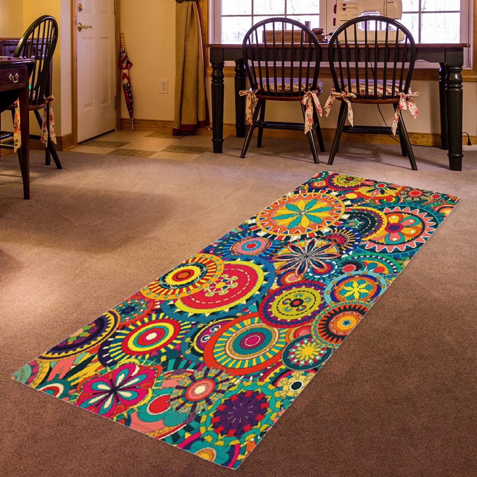 Коврик размером 24x71 дюйм, красивый дизайн, широко используется. Легко чистить, можно стирать вручную.
