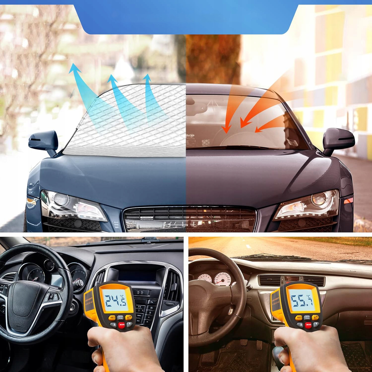 - 🚗- Козырек на лобовое стекло автомобиля обеспечивает надежную защиту вашего автомобиля. Зимой он защищен от льда, снега и мороза; летом он защищен от солнца. Его также можно использовать в качестве защитного чехла, чтобы избежать пыли и листьев в повседневной жизни.