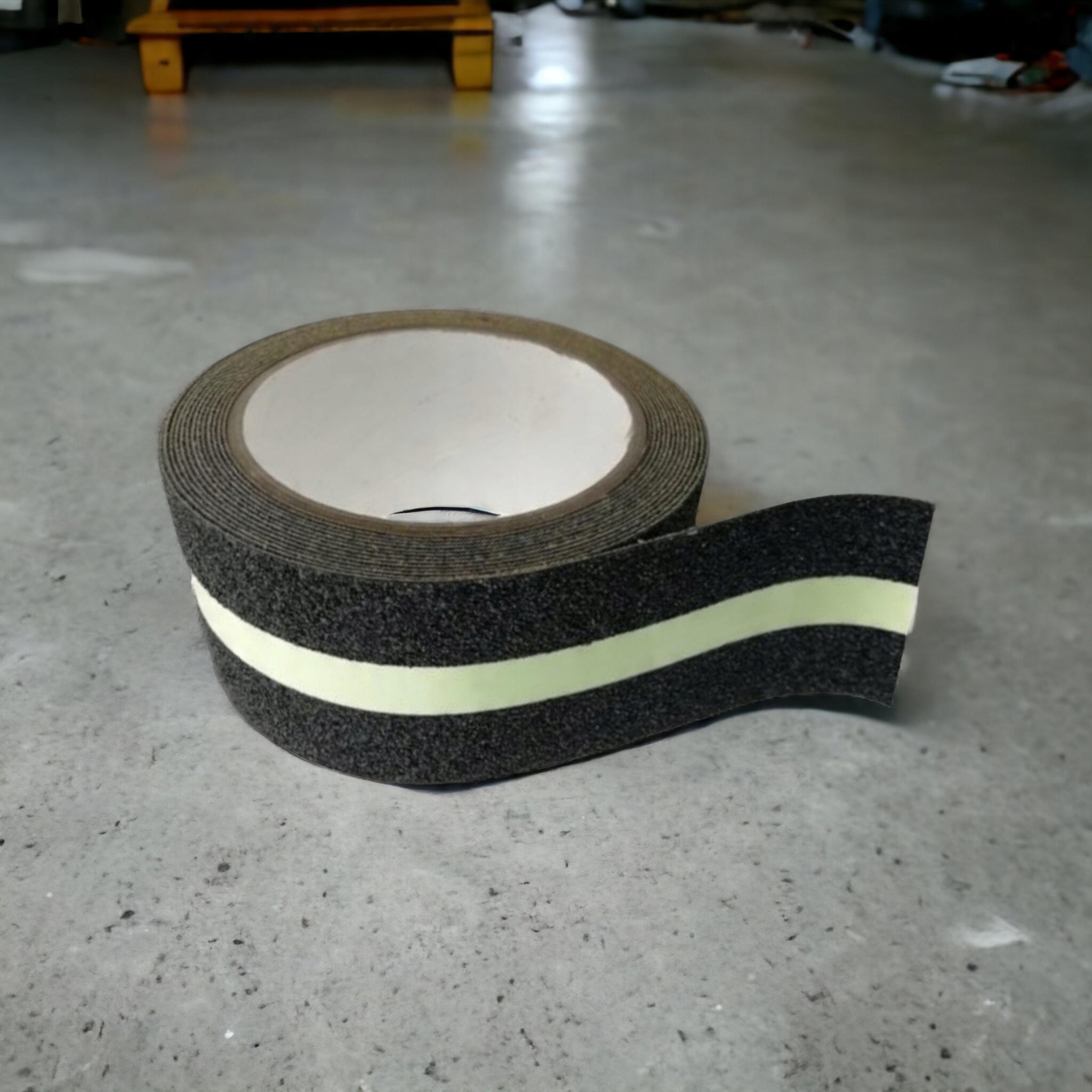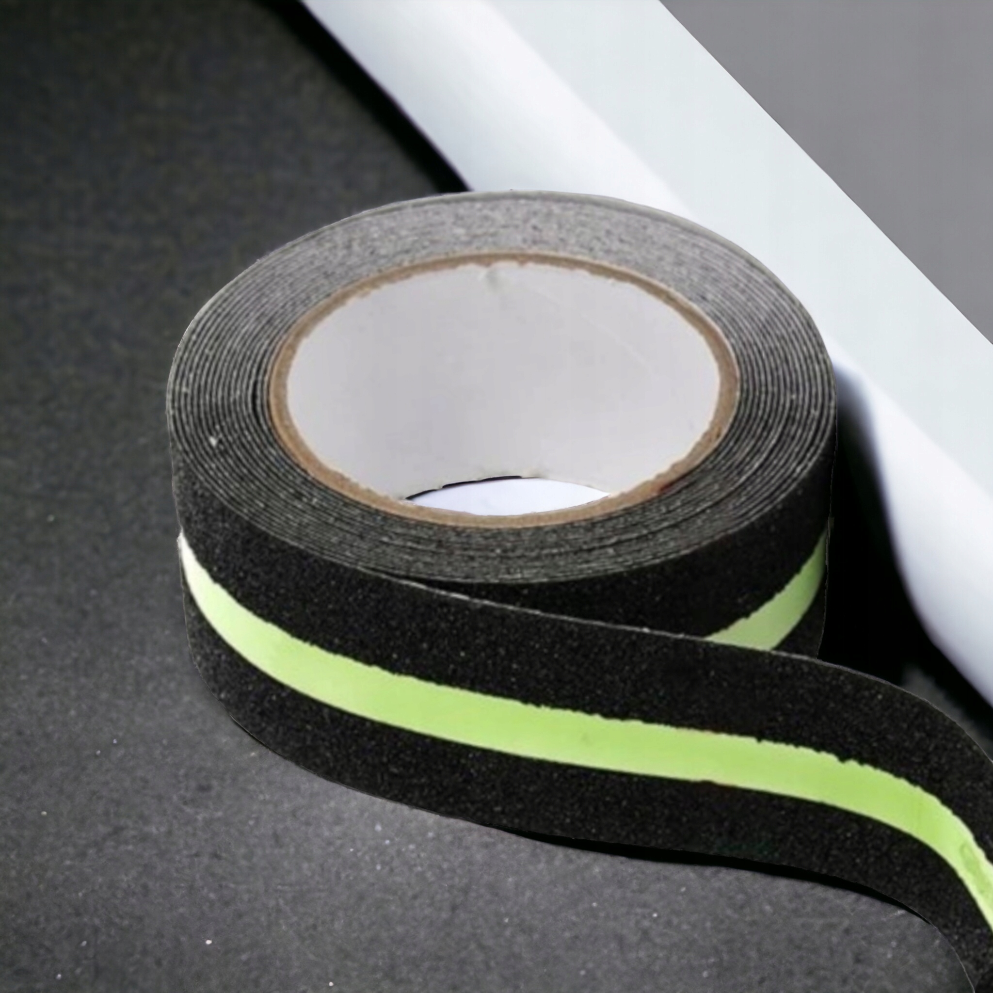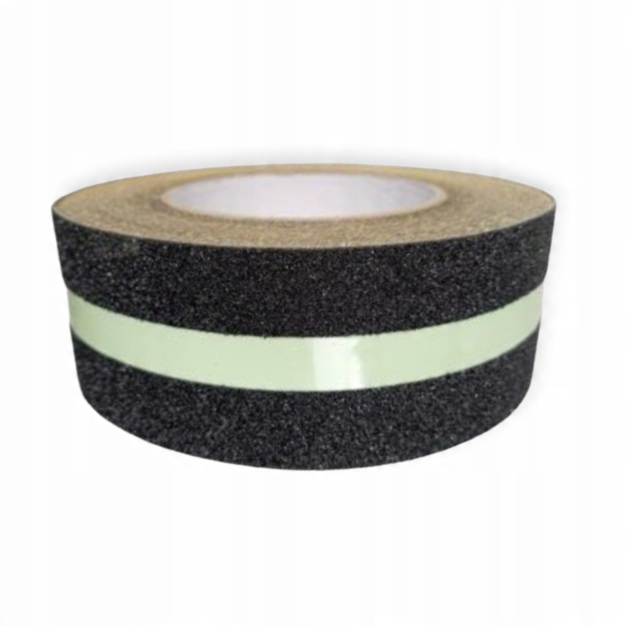 Самоклеящаяся противоскользящая флуоресцентная лента. Противоскользящая поверхность ленты сделает спуск по лестнице более безопасным. Посередине имеется флуоресцентная полоса, которая сделает ступеньки более заметными в темноте. Лента может использоваться как внутри, так и снаружи помещения и устойчива к погодным условиям. Изделие можно свободно разрезать в зависимости от наших потребностей.