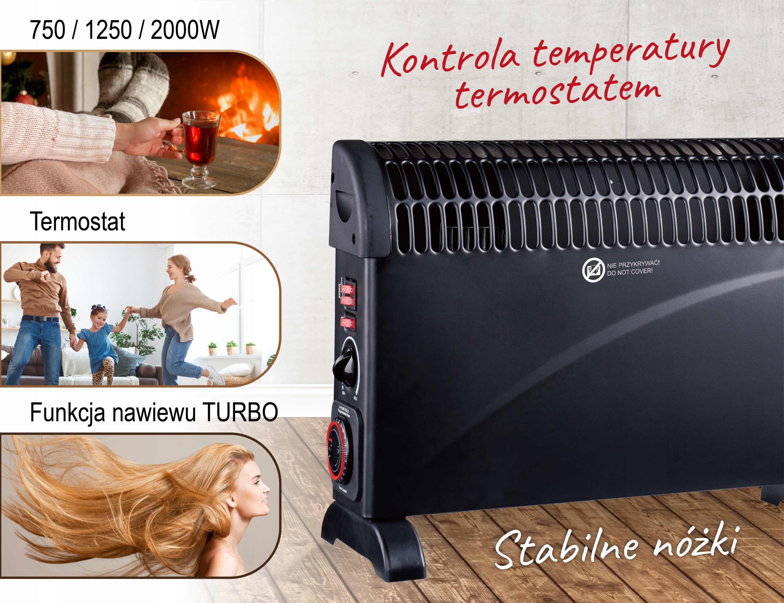 Теплый воздух, поднимающийся от радиатора, эффективно повышает температуру окружающей среды, что полезно в различных ситуациях: как когда в помещении нет другого источника тепла, так икогда источников тепла недостаточно для человек, проживающий там. Конвектор хорошо подойдет как в квартире, так и в офисе. Дополнительная функция воздушного потока TURBO, обеспечивающая быстрое распределение воздуха. Радиатор оснащен 3 уровнями мощности: 750Вт, 1250Вт, 2000Вт.