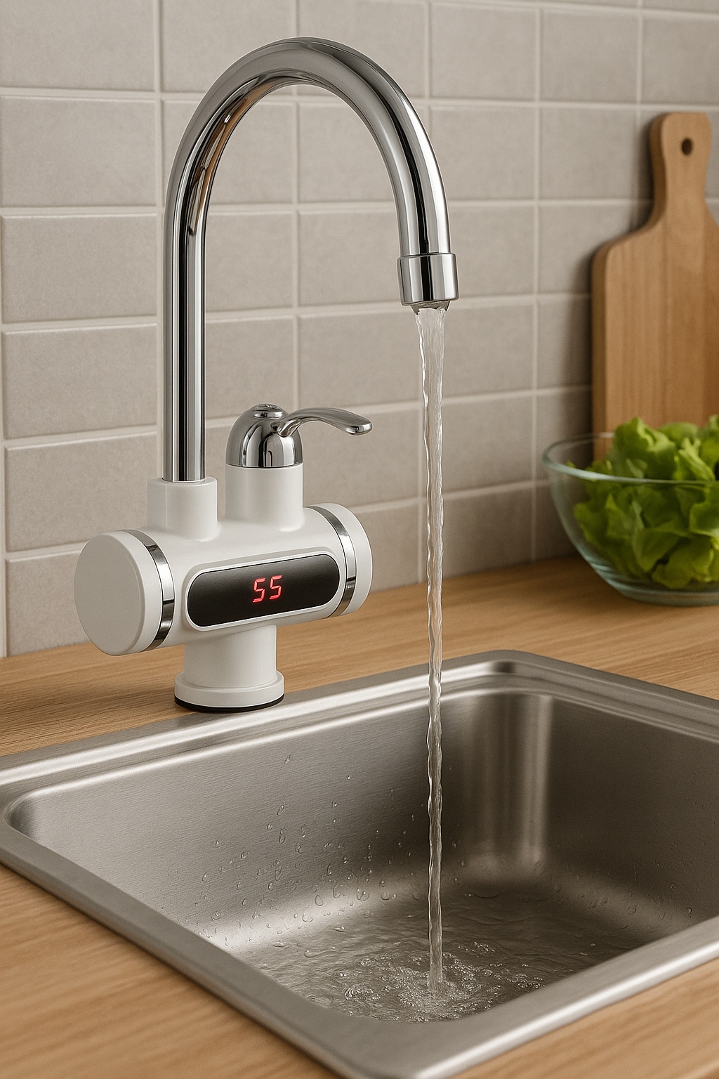 ЭЛЕКТРИЧЕСКИЙ ПРОМОЧНЫЙ ВОДОНАГРЕВАТЕЛЬ С ЖК-ДИСПЛЕЕМ, НАД РАКОВИНОЙ