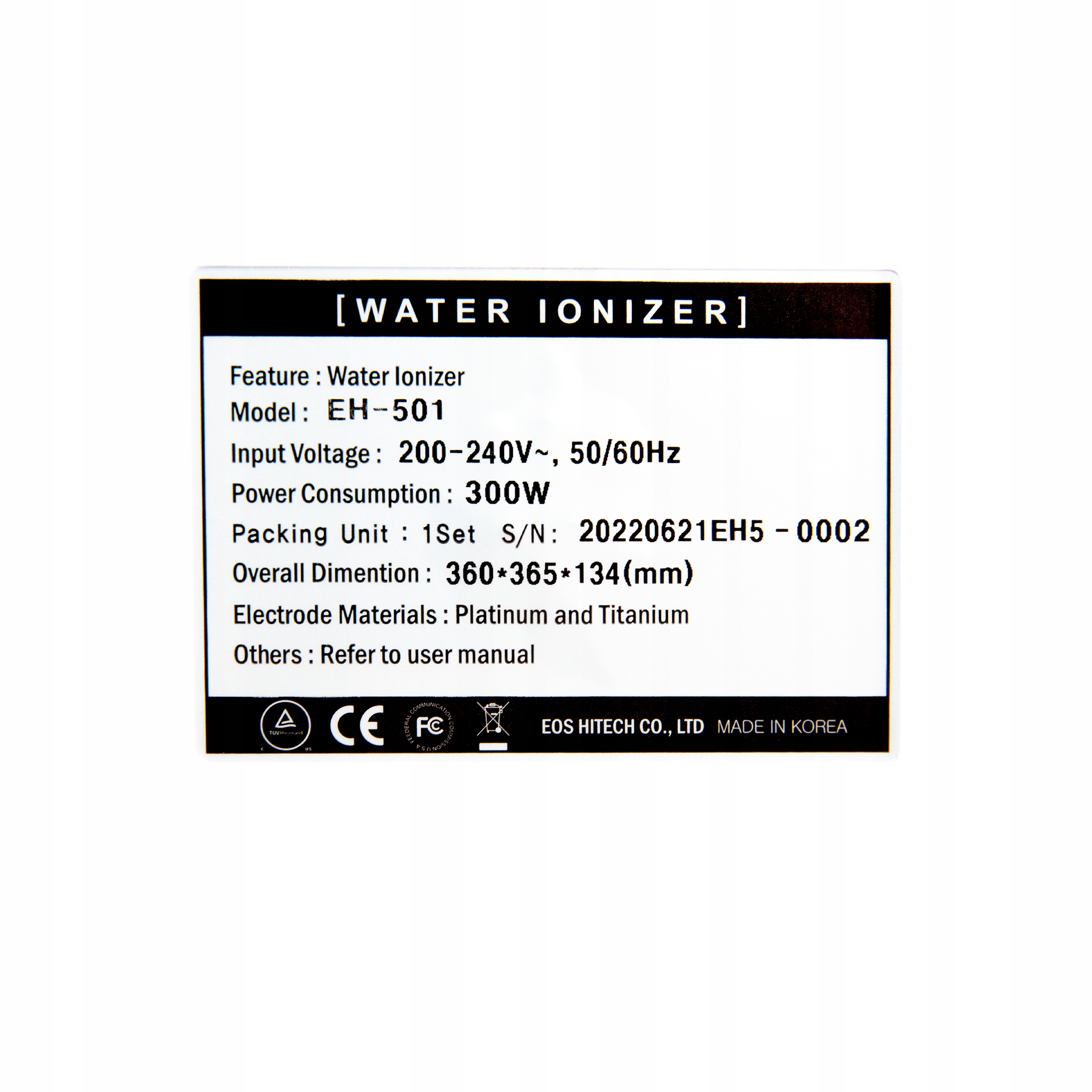 Производитель корейской компании EOS Hitech, проточный ионизатор EH-501 — новый стандарт среди ионизаторов. Роскошный и современный внешний вид ионизатора прекрасно впишется в любой кухонный интерьер.