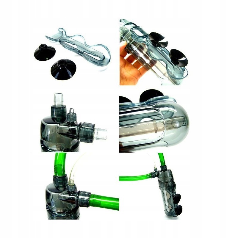 В комплект входит крепление, позволяющее разместить реактор внутри или снаружи аквариума (например, в шкафу), в зависимости от существующей установки. Цвет устройства (дымчато-серый) препятствует заселению водорослями. Легко чистить.